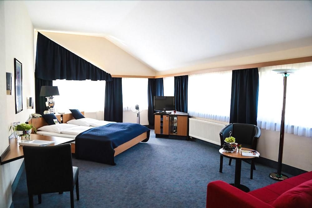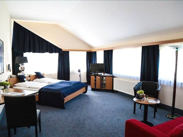 El Best Western Hotel de Ville de Eschweiler se encuentra en el triángulo formado por las ciudades de Aquisgrán, Colonia y Maastricht, en la ladera norte del Eifel. Los excelentes enlaces de carretera le permitirán llegar a cualquiera de estas ciudades rápidamente y sin complicaciones. Nuestro motivado equipo le da la bienvenida a este moderno establecimiento de categoría ejecutiva especializado en viajeros de negocios y conferencias.Nuestras 66 amplias y cómodas habitaciones están equipadas con bañera o ducha, aseo, secador de pelo, televisión vía satélite, teléfono y minibar. Para facilitar sus momentos de trabajo, el hotel ofrece Wi-Fi gratuito en todas las habitaciones, salas de conferencias y áreas públicas o también puede utilizar nuestra área de negocios con ordenador, impresora y acceso a Internet en el vestíbulo.Nuestro hotel de 4 estrellas está situado en el centro del casco antiguo de Eschweiler. Los numerosos restaurantes de la zona auguran diversión y delicias culinarias. En el norte de la ciudad el Blausteinsee invita a excursiones a pie, en bicicleta o por el lago.Relájese del estrés diario y disfrute de la tranquilidad del hermoso paisaje.