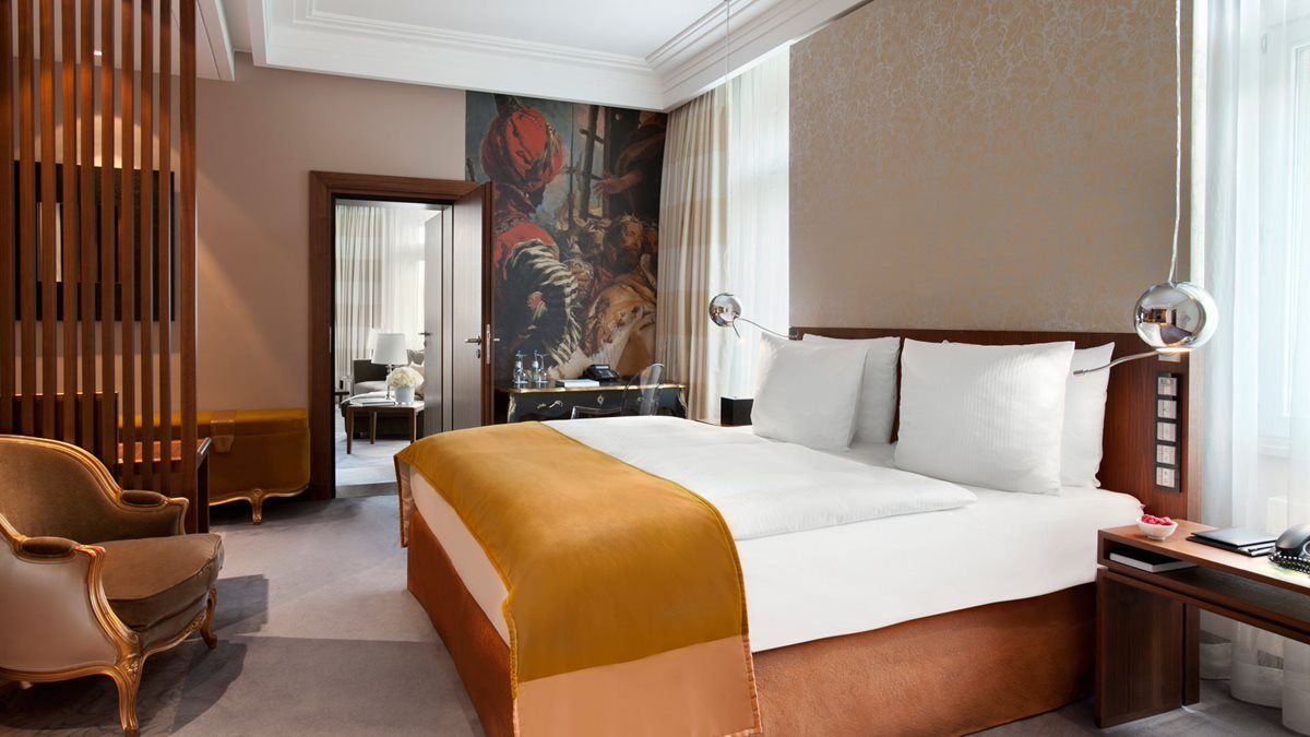 Las habitaciones del Vier Jahreszeiten Kempinski München son elegantes y modernas, y disponen de aire acondicionado, TV, minibar y baño con albornoces, zapatillas y artículos de aseo gratuitos. Se proporciona una botella de agua gratuita en la habitación todos los días. Además, se facilita hervidor de agua eléctrico, bajo petición y según disponibilidad.