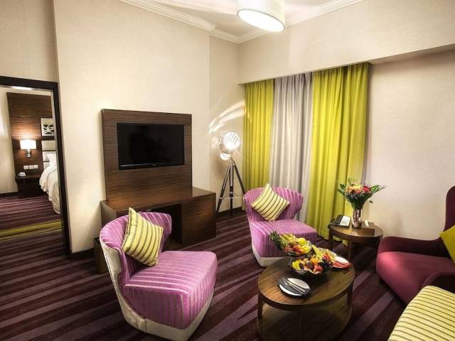 Inmerso en el centro de una de las áreas en desarrollo de Dubai, se encuentra el Ghaya Grand Hotel. Cuenta con un estilo sin pretensiones y añade un toque contemporáneo a un distrito lleno de posibilidades. Está situado a poca distancia del nuevo centro comercial Meaisem City Center Mall, y en las cercanías de la ciudad del motor, el Dubai Autodrome, de la Ciudad Deportiva, de los famosos jardines Miracle Gardens, del Club Els, de la zona de Tecom y del Jumeirah Golf Estates. El Ghaya Gran hotel es una joya local que ofrece un servicio inigualable con elegantes habitaciones, suites y apartamentos de larga estancia en Dubai, cada uno diseñado individualmente con toques modernos. El hotel está convenientemente situado a 15 minutos del centro comercial the Mall of the Emirates, del Jumeirah Beach Resort (JBR) y del Ibn Battuta Mall.