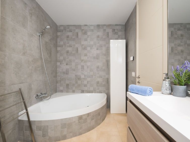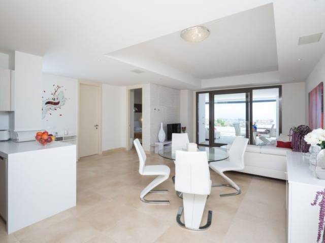 "Cortesin Retreat", apartamento de 3 estancias 100 m2, orientación sur. Vivienda adecuada para 4 adultos. Espacioso y luminoso, con mobiliario muy confortable y moderno: salón-comedor con TV digital y aire acondicionado. Salida a la terraza. 1 dorm. con 1 cama (180 cm, 190 cm de longitud), baño/bidet/WC. 1 dorm. con 1 cama (135 cm, 190 cm de longitud). Cocina abierta (horno, lavavajillas, 4 placas de vitrocerámica, tostadora, hervidor de agua eléctrico, congelador, cafetera eléctrica) con barra americana. Baño/bidet/WC. Aire acondicionado, aire caliente. Suelo de piedra natural. Terraza grande 70 m2. Muebles de terraza, tumbonas (2), rincón para sentarse. Vista panorámica muy bonita al mar y a la bahía. El alojamiento dispone de: lavadora, plancha, secador de pelo. Internet (Wifi). Plaza de aparcamiento n. 58 (cubierto, 1 coche). A tener en cuenta: no adecuado para niños más pequeños de 5 años. Apartamento para no fumadores. Dependiendo la situación de COVID 19 del momento el horario puede variar del horario de apertura habitual según la descripción. VFT/MA/57972