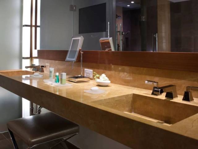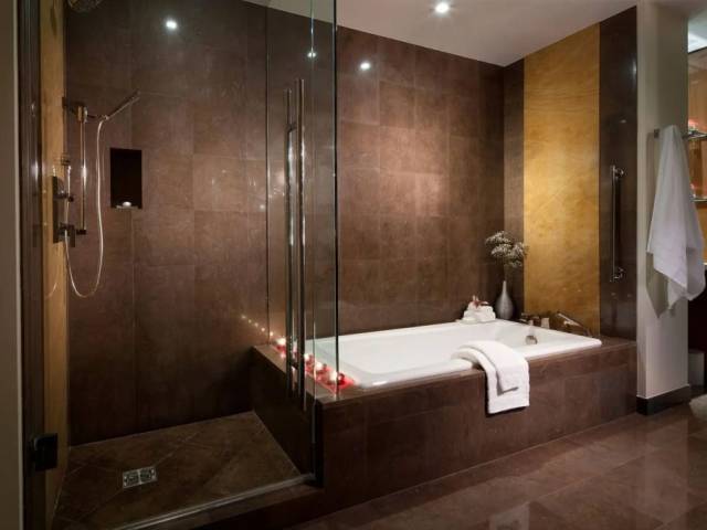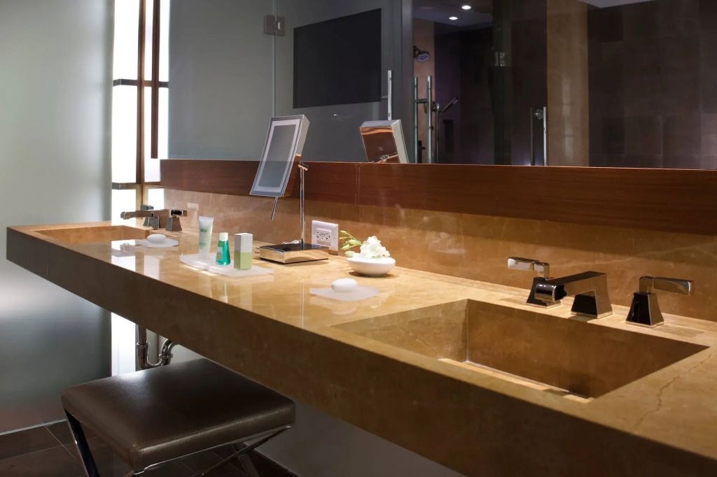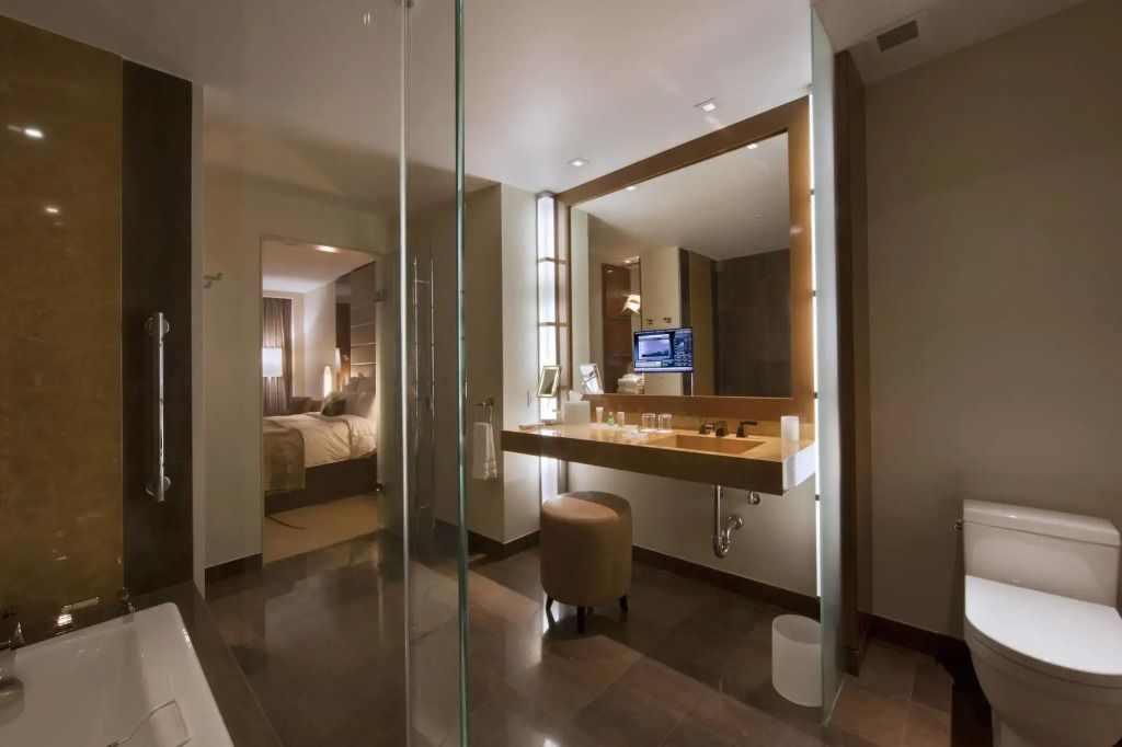 La habitación está decorada con calidez y cuenta con todo lo que necesitas para descansar después de un día largo y agitado. Incluye una TV, un minibar, batas y pantuflas. Ten en cuenta que no todas las habitaciones incluyen todos los servicios mencionados.