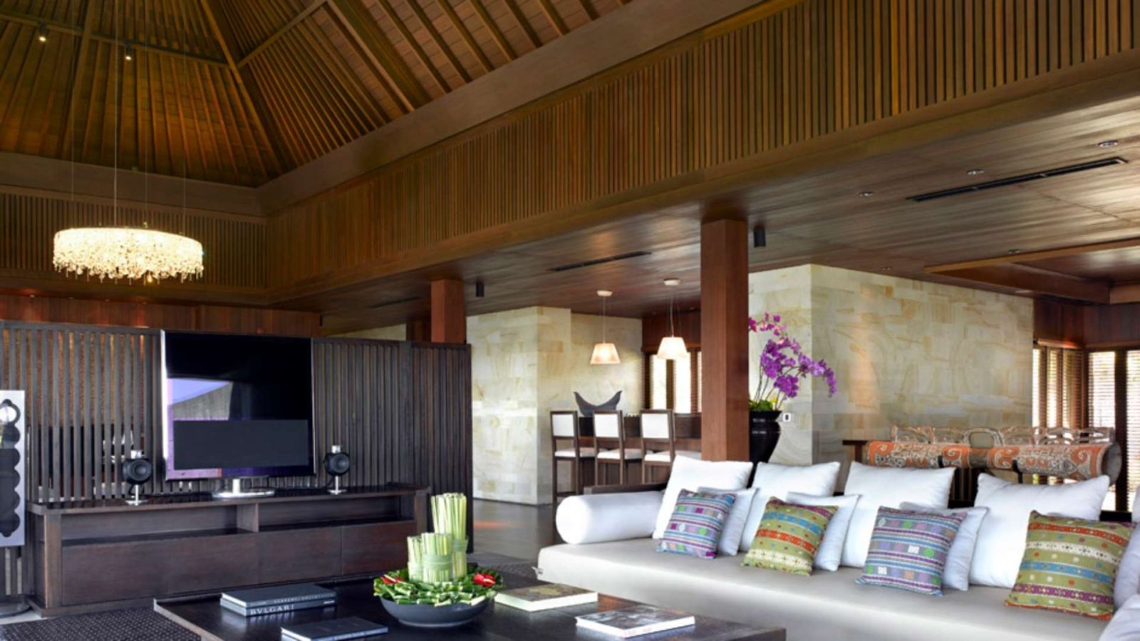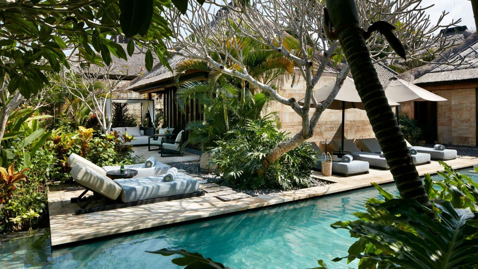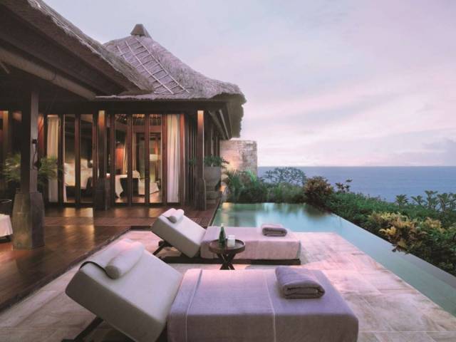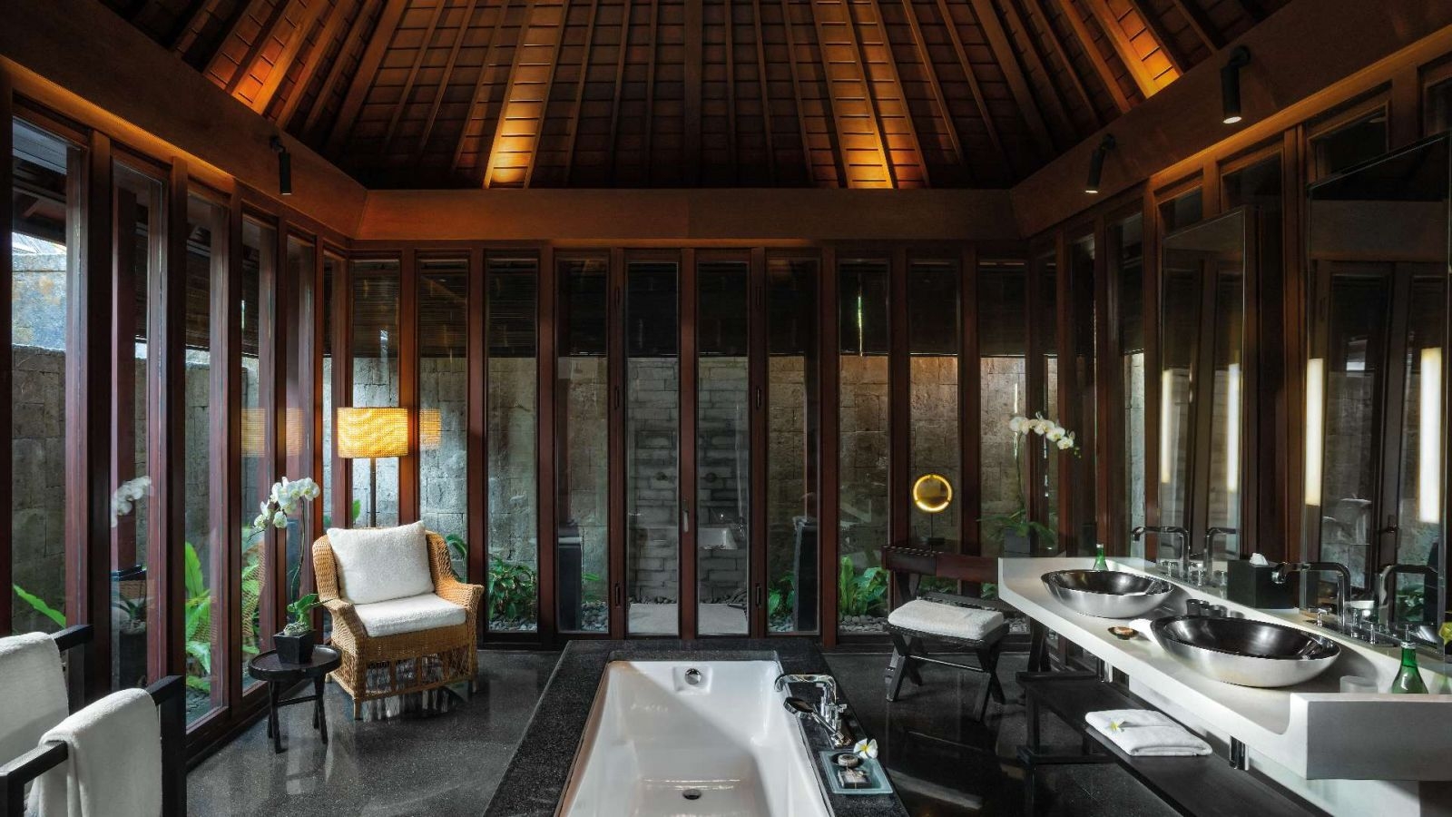 Las villas del Bulgari Resort Bali son amplias y presentan una decoración balinesa tradicional. Incluyen sistemas audiovisuales y baño con ventanales y vistas al patio privado.