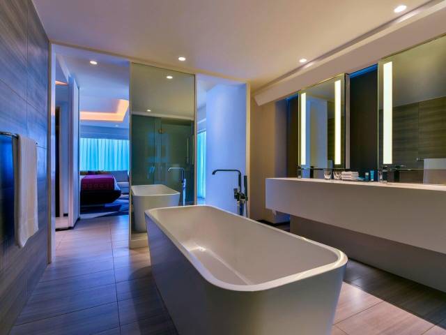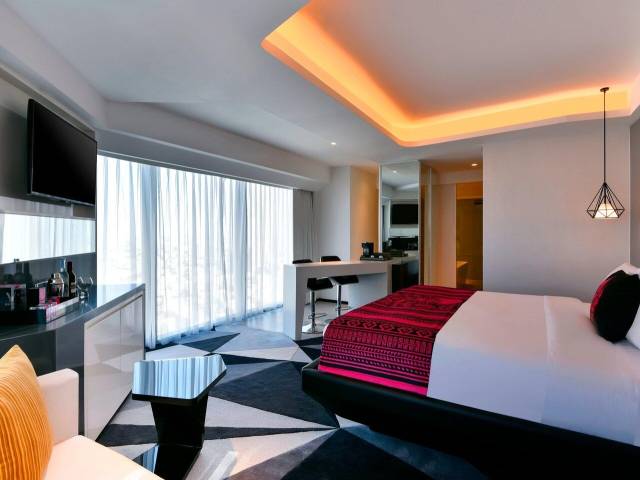 Ofrece 280 habitaciones, 44 de ellas suites. Los ventanales ofrecen vistas al emblemático perfil urbano de Amán y los interiores tienen un diseño vivo, tecnología de vanguardia y las servicios modernos únicos. Las habitaciones tienen TV por cable de pantalla plana y café y té Illy. Los huéspedes pueden tomar algo en el W Mix Bar. Además se ofrecen camas exclusivas W y bañera y/o ducha de efecto lluvia