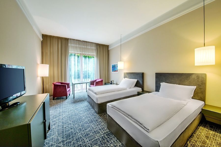 El hotel NH Prague City ofrece un diseño moderno y de buen gusto para su alojamiento en el corazón de Praga, con 439 espaciosas y confortables habitaciones Standard, Superior y Executive, incluyendo 28 Suites. Las 136 habitaciones Executive y Suites, recientemente decoradas, se encuentran en el centro ejecutivo del hotel, en la cima de la colina Smichov, conectada al hotel desde la base de la colina por medio del teleférico. Las tarifas de las habitaciones Executive y Suite incluyen beneficios adicionales tales como bebidas gratuitas diariamente en el Tower Lounge Bar, una cafetera Nespresso en su habitación, acceso a internet gratuito y uso del centro de negocios del hotel y de las instalaciones fitness/wellness. Todas las habitaciones tienen acceso a internet de alta velocidad, aire acondicionado, TV, teléfono directo y minibar. Existen habitaciones disponibles para no fumadores. En las cercanías del hotel podrás encontrar variedad de tiendas, dos centros de negocio, servicio de transporte gratuito a la estación de metro, acceso para discapacitados y parking de varios niveles. NOTA: Niños: de 0 a 11 años. Los huéspedes a partir de 12 años se consideran adultos.