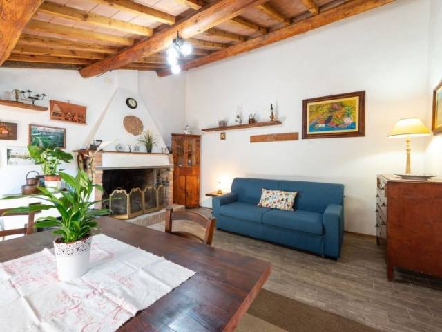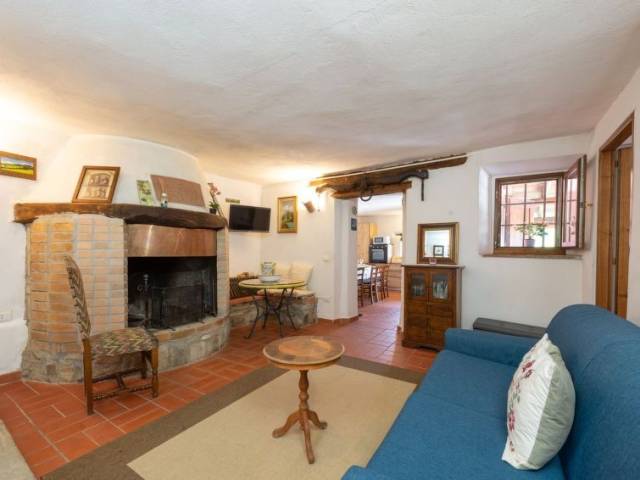 Casa pareada 4 estancias 100 m2 en 2 plantas. Con mobiliario confortable y rústico: salón-dormitorio con 1 sofá-cama doble, chimenea y TV satélite. 1 dorm., abierto pequeño con 1 cama (80 cm), ducha/WC. 1 dorm. con 1 cama doble. Cocina abierta (horno, lavavajillas, 4 fuegos, tostadora, hervidor de agua eléctrico, congelador, cafetera eléctrica) con mesa de comedor y estufa de lena. Salida a la terraza. Calefacción no en todas las estaciones. Planta superior: (escalera exterior) salón-dormitorio con 1 sofá-cama doble, chimenea y mesa de comedor. Salida a la terraza. 1 dorm. con 1 x 2 literas (80 cm), 1 cama doble. Cocina (4 Placas de inducción, congelador). Ducha/bidet/WC. Calefacción de leña. Calefacción no en todas las estaciones. Suelo de piedra natural. Terraza cubierta. Barbacoa, tumbonas (4). Vista panorámica. El alojamiento dispone de: lavadora, plancha, trona, cuna. Internet (Wifi, gratis). A tener en cuenta: apartamento para no fumadores. Permitido máximo 3 mascotas / perros. No hay conexión interna entre las plantas.