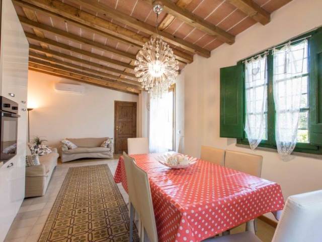 Casa de campo "Colle alla luna", 150 m s.n. m., bonita, rústica. Alojamiento compuesto de edificio principal y edificio anexo, a 5 km del centro de Montecatini Terme, a 30 km del centro de Lucca, a 50 km del centro de Firenze, lugar aislado, soleado en una pendiente, a 55 km del mar, en el campo. Privado: jardín en diferentes niveles, 1 ha con plantas y árboles, jardín natural, piscina vallada (9 x 4 m, 110 - 150 cm de profundidad, Disponible por temporada: 25.Abr. - 15.Oct.). Ducha exterior, terraza, muebles de jardín, mantenimiento de la piscina a través del propietario/jardinero. En el complejo: sauna, baño turco, bañera de hidromasaje (todo con recargo). Acceso estrecho durante 1 km. Aparcamiento (para 2 coches) en el mismo terreno. Tienda de comestibles 1 km, supermercado 2 km, restaurante 1 km, estación de tren "Montecatini Terme" 4 km, playa de arena "Lido di Camaiore" 55 km. Campo de golf (18 hoyos) 10 km. Atracciones en los alrededores: Montecatini Alto 300 m. Atención: El spa se encuentra en la masía a unos 1000 m El restaurante de la masía está abierto un día a la semana.
