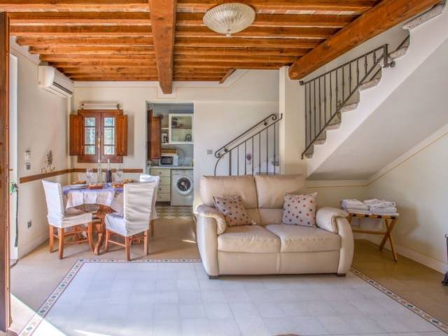 Casa 3 estancias 75 m2 en 2 plantas. Reformada, con mobiliario rústico y de buen gusto: salón-comedor con chimenea, mesa de comedor y TV satélite. 1 dorm. con 2 camas (80 cm), ducha/bidet/WC. Salida al jardín. Pequeña cocina abierta (horno, lavavajillas, 4 fuegos, tostadora, hervidor de agua eléctrico, microondas, cafetera eléctrica). Planta superior: 1 dorm. con 1 cama de matrimonio (160 cm), ducha/bidet/WC. Calefacción eléctrica, aire acondicionado. Terraza-jardín. Barbacoa (portátil), tumbonas. Vista lejana bonita al paisaje. El alojamiento dispone de: lavadora, caja fuerte, plancha, trona, cuna hasta 2 años. Internet (Wifi, gratis). Plaza de aparcamiento (vallada, 1 coche) junto a la casa. A tener en cuenta: casa para no fumadores. Permitido máximo 1 mascota / perro.