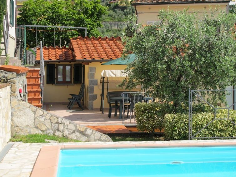 Casa "Fontanella", 400 m s.n. m.. En el barrio de Matraia Colle, a 1 km del centro de Matraia, a 13 km del centro de Lucca, a 32 km del centro de Pisa, en una pendiente, a 43 km del mar. Comunitario: terreno 1'000 m2, jardín en diferentes niveles con césped, piscina (7 x 4 m, 140 cm de profundidad, Disponible por temporada: 01.May. - 01.Oct.). Ducha exterior, parque infantil. Acceso empinado, estrecho. Acceso por escaleras (10 escalones) hasta la casa. Aparcamiento en el mismo terreno. Tienda 1 km, supermercado 7.5 km, parada de autobús 250 m, playa de arena "Viareggio" 43 km. Atracciones en los alrededores: Collodi Pinocchio Park 12 km, Montecatini Terme 36 km, Monsummano Terme 37 km, San Giuliano Terme 27 km, Viareggio 39 km, Marina di Pisa 54 km. Lagos conocidos fácilmente accesibles: Torre del LAgo 42 km, Lago di Massaciuccoli 33 km. A tener en cuenta: el propietario vive en el mismo terreno.