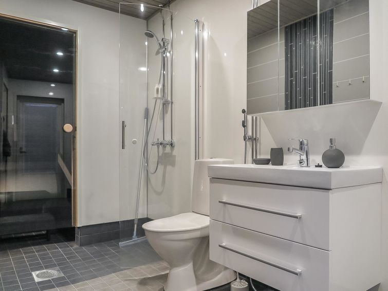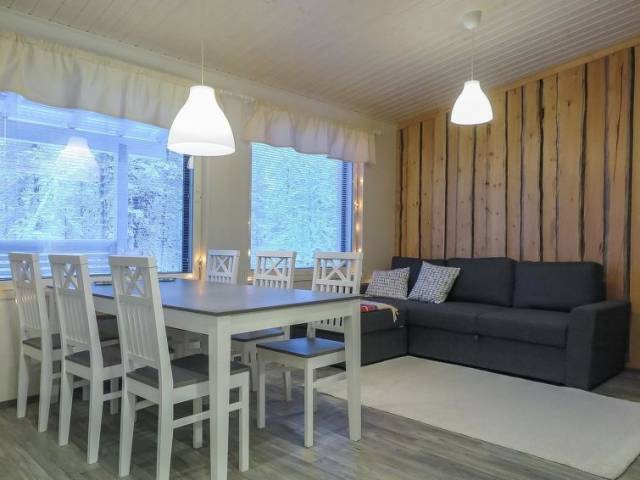265 km al norte de Rovaniemi, en el centro turístico de Saariselkä en la zona de Laanipalo. Apartamento en casa adosada de madera, construida en 2019. Salón-cocina con el sofá convertible, 2 dormitorios con 2 camas, sauna, baño/WC, WC separado, veranda cubierta y abierta y depósito. Silla alta para un bebé y cuna están disponibles bajo petición del propietario, el uso sin cargo. Apartamento funcional en casa adosada en la zona tranquila de Laanipalo. Iluminado sendero de esquí y pista de atletismo a 400 metros de distancia. Laanihovi a 1,3 km, servicios en el centro turístico de Saariselkä a 2,4 km. Durante el invierno, el vigilante del apartamento proporciona el motonieves, excursiones de pesca etc. por una tarifa adicional. En la cabaña existe la posibilidad para la carga rápida (alto voltaje) de coches eléctricos. Limpieza final y ropa de cama (sábanas y toallas) siempre están incluidas en los precios.