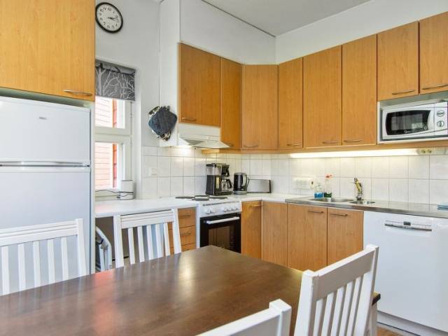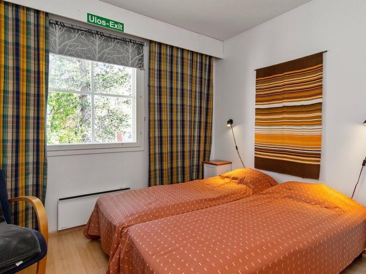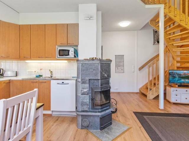 Permitido máximo 1 mascota / perro. El apartamento de dos plantas Moitakuru C 30 está situado en el extremo sur de una casa de troncos en el centro de Saariselkä, lo que proporciona un buen acceso a los servicios de la zona. El salón-cocina tiene espacio para socializar y relajarse. Una chimenea de esteatita en el salón añade calidez al alojamiento. Hay escaleras de caracol desde el salón a la planta superior. Arriba hay tres dormitorios para dormir. Dos de los dormitorios tienen dos camas individuales. Un dormitorio tiene una cama de 120 cm de ancho. También hay un sofá cama convertible en la planta baja, proporcionando espacio para dormir para dos personas. En la planta baja hay una sauna para relajarse y una ducha. El apartamento tiene dos aseos separados. La limpieza final está incluida en el precio. Se pueden pedir sábanas y toallas por un suplemento. El apartamento está equipado con vajilla básica, cafetera, hervidor de agua, tostadora, plancha y tabla de planchar y secador de pelo. El apartamento también dispone de un pequeño trastero exterior para las chimeneas. Se puede hacer el mantenimiento de los esquís en la sala de mantenimiento de esquís de Moitakuru A-house.