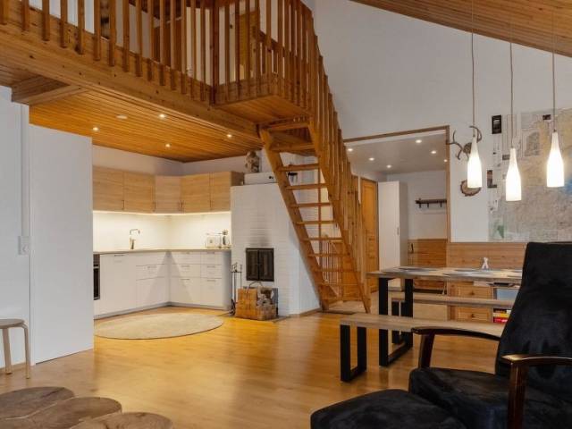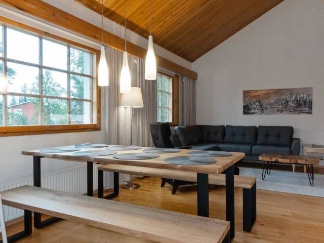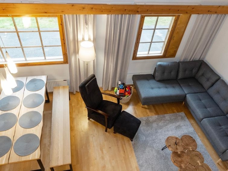 Un versátil y renovado apartamento a dos aguas en una casa adosada en el centro de Saariselkä. Este espacioso apartamento ofrece un alojamiento confortable para unas vacaciones inolvidables en los encantadores paisajes del norte de Laponia. La ubicación es inmejorable, ya que el balneario, los restaurantes y las tiendas están a un corto paseo. Las cercanas pistas de esquí y las impresionantes rutas de senderismo también están justo al lado, lo que hace de este apartamento un lugar ideal tanto para actividades de invierno como de verano. El apartamento está equipado con consideraciones especiales para niños (ver detalles adicionales). El apartamento se distribuye en dos plantas. En la planta baja, hay una amplia sala de estar/cocina, un dormitorio con dos camas, una sauna, un cuarto de baño y un WC separado. En la planta superior hay dos dormitorios con dos camas cada uno. Uno de los dormitorios también tiene acceso al WC. También hay un altillo con un sofá cama. El acceso a los dormitorios se realiza a través del altillo. La planta superior también dispone de dos vestidores. En todos los dormitorios, las camas individuales (80x200 cm) están colocadas una al lado de la otra, pero se pueden separar (cubrecolchones separados). Equipamiento infantil: dos cunas de viaje, un colchón junior, una trona, una silla junior, una bañera, dos orinales, vajilla infantil, juguetes, libros, un carro de esquí Thule de 2 plazas, un portabebés Deuter kid comfort pro, un trineo infantil Fjellpulken de 2 plazas, Stiga, trineos y pieles de oveja. Puertas de seguridad para niños en la parte superior e inferior de las escaleras.