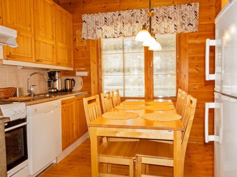 170 km al norte de Rovaniemi, cabaña de troncos cepillados de 1991, salón-cocina, dormitorio con cama doble en la planta baja, dormitorio con 2 camas en la planta superior, buhardilla para dormir (10 m²) con 2 camas, baño, sauna (estufa eléctrica), 2 porches abiertos (12 m² y 6 m²). Escalera empinada a la buhardilla. Depósito para esquís que se cierra con llave. Apartamento final 3 en casa adosada en el centro turístico de Levi. Parcela nivelada principalmente con coníferas. Detrás de la cabaña hay una zona arbolada sin edificios, por ambos lados hay otras casas vacacionales. Centro de Levi y Spa a 3,5 km, Levigolf a 2 km, parada de autobús para esquiadores a 400 m de la cabaña, aeropuerto Kittilä a 20 km. La cabaña no se alquila a grupos de jóvenes (menores de 25 años) o por celebraciones. Limpieza final no está incluida en el precio. Esperamos que reserve también la limpieza final para esta cabaña.