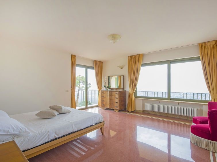 Villa La Delfina está situada en una posición elevada en las colinas encima de Forte de Marmi, con vistas a toda la costa. Mientras está cerca de todas las atracciones más famosas de Versilia, por su posición estratégica la propiedad es al mismo tiempo ubicada en una zona tranquila y privada, rodeada de arbustos verdes, suculentas y plantas coloridas. Villa "Delfina", bonita, individual. En el aldea Palatina, a 9 km del centro de Forte de Marmi, lugar soleado en una colina, zona con poco tráfico, a 8 km del mar. Privado: terreno 5'000 m2 (vallada), jardín en diferentes niveles con césped y plantas, piscina vallada (12 x 8 m, 140 cm de profundidad, Disponible por temporada: 01.May. - 15.Oct.). Ducha exterior, terraza-jardín, cenador, muebles de jardín. En el inmueble: acceso a internet, alarma, lavadora, calefacción disponible desde el 01.Nov. - 15.Abr.. Cambio de sábanas (suplemento extra). Aparcamiento junto a la casa. Tienda de comestibles 2 km, supermercado 5 km, restaurante 1 km, estación de tren 5 km, playa de arena "Cinquale" 8 km, piscina termal "San Carlo" 5 km, lago Massaciuccoli 30 km. Puerto para yates 15 km, campo de golf (18 hoyos) 7 km, escuela de vela 8 km, tenis 8 km. Atracciones en los alrededores: Terme della Versilia 8 km, Pietrasanta 9 km, Lucca 45 km, Pisa 50 km, Cinque Terre 60 km, Firenze 90 km. La casa está completamente equipada con todas las comodidades y tiene un jardín precioso con piscina y área amueblada con glorieta y tumbonas, donde los huéspedes pueden relajarse disfrutando de la vista espectacular al mar. Villa 7 estancias 300 m2 en 3 plantas. Espacioso y luminoso, con mobiliario bonito y de estilo: 2 dorm. dobles, cada habitación con aire acondicionado. 1 dorm. con ventanal con 1 sofá-cama doble, 1 cama doble, ducha/bidet/WC y aire acondicionado. Salida a la terraza. Baño/bidet/WC, ducha/bidet/WC. Calefacción de gas, aire acondicionado. Calefacción disponible desde el 01.11. al 15.04. Planta superior: comedor 21 m2 con ventanal con mesa de comedor. Salida a la terraza. Salón 87 m2, grande con puerta corredera, ventanal con TV (pantalla plana). Salida a la terraza. Grande cocina 27 m2 (5 fogones, horno, lavavajillas, microondas, cafetera eléctrica). Salida al jardín. Baño. Planta superior 2: 1 dorm. 30 m2, abuhardillado grande con puerta corredera, ventanal con 1 sofá-cama doble, 1 cama doble, baño/bidet/WC y aire acondicionado. Salida al balcón. 3 terrazas. Barbacoa (portátil). Vista muy bonita al mar. El alojamiento dispone de: lavadora, plancha, secador de pelo. Internet (Wifi, gratis). Plaza de aparcamiento (vallada, 3 Coches) junto a la casa. A tener en cuenta: casa para no fumadores. Permitido máximo 3 mascotas pequeñas / perros. La propiedad es de tres niveles y dispone de unos muebles y acabados finos de color neutral y con ventanas grandes que dejan entrar la luz natural por los espacios.