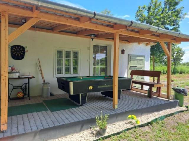 Casa unifamiliar "Balatoni Farmhaz", moderna del año 1970, reformada en 2022. En la localidad, a 1 km del centro de Balatonfenyves, a 6 km del centro de Fonyod, a 25 km del centro de Keszthely, a 700 m de un lago, a 700 m de la playa. Privado: terreno, jardín (vallado). Terraza, muebles de jardín, barbacoa. Acceso hasta la casa. Aparcamiento (para 2 coches) en el mismo terreno. Tienda 400 m, tienda de comestibles 1 km. A tener en cuenta: no adecuado para niños más pequeños de 14 años. Vivienda adecuada para 4 adultos. El propietario no acepta grupos de adolescentes/jóvenes. Carga y descarga de equipaje posible en la casa de vacaciones. Casa 3 estancias 50 m2. Vivienda adecuada para 4 adultos. Completamente reformada en 2022, con mobiliario confortable y de buen gusto: salón-comedor. Salida a la terraza. 2 dorm. dobles, cada habitación con 1 cama de matrimonio, TV satélite y canales internacionales. Cocina abierta (tostadora, hervidor de agua eléctrico, microondas, cafetera eléctrica). Ducha/WC. Suelo de piedra natural. El alojamiento dispone de: Internet (Wifi, gratis).