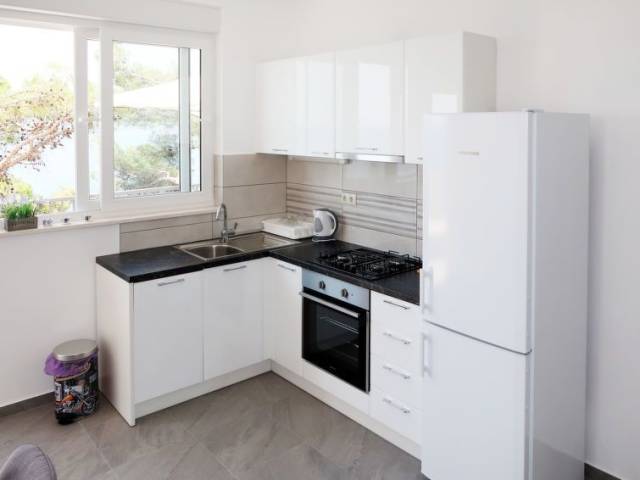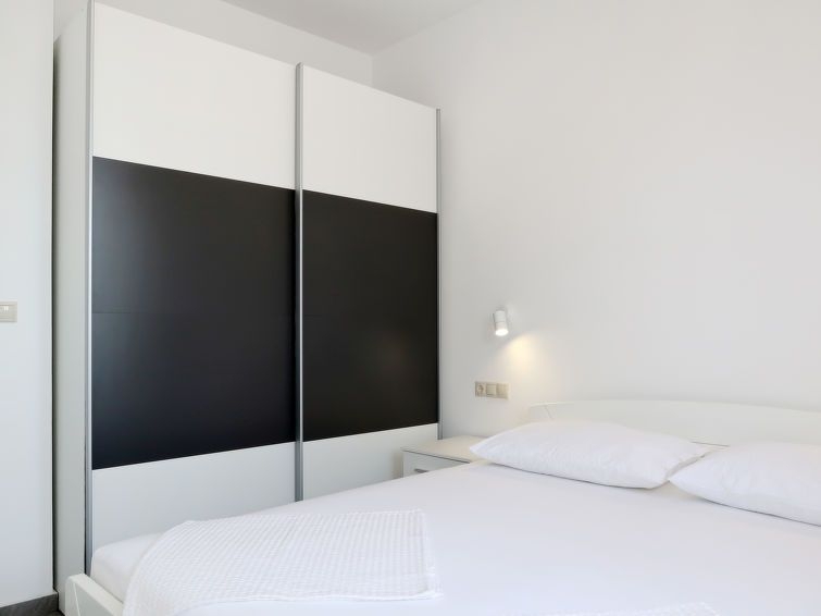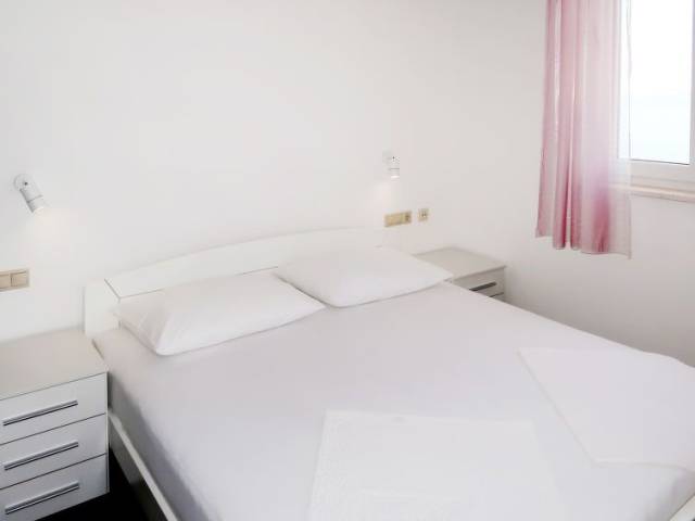 "Lada (OMI205)", bungalow 2 estancias 45 m2. Salón-comedor con 1 sofá-cama doble (150 cm), TV satélite (pantalla plana), aire acondicionado. Salida al balcón. 1 dorm. con 1 cama doble y aire acondicionado. Cocina abierta (1 fogón, horno, lavavajillas, 3 fuegos, tostadora, hervidor de agua eléctrico, congelador, cafetera eléctrica). Ducha/WC. Ningún tipo de calefacción. Balcón. Muebles de balcón. Vista espléndida al mar. El alojamiento dispone de: Internet (Wifi, gratis).