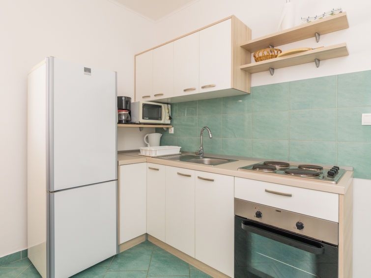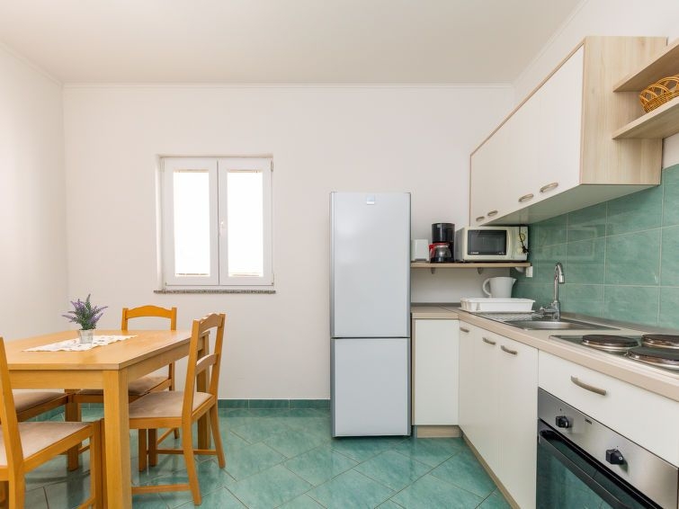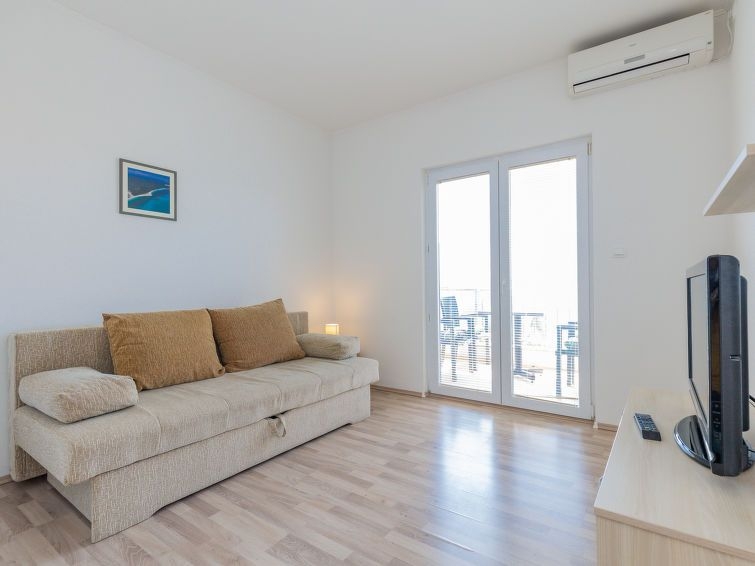 "Maja (SRD422)", apartamento de 2 estancias 40 m2 en el 1° piso. Salón-comedor con 1 sofá-cama doble (155 cm, 190 cm de longitud), TV satélite y aire acondicionado. Salida al balcón. 1 dorm. con 1 cama doble (160 cm, 200 cm de longitud). Cocina abierta (4 fogones, horno, tostadora, hervidor de agua eléctrico, microondas, congelador, cafetera eléctrica). Ducha/WC. Calefacción eléctrica. Balcón 6 m2. Muebles de balcón. Vista al mar. El alojamiento dispone de: lavadora. Internet (Wifi, gratis). A tener en cuenta: casa para no fumadores. Entrada privada.