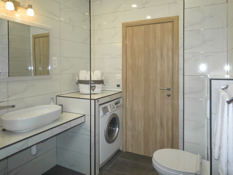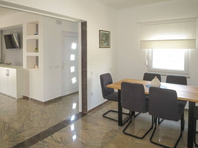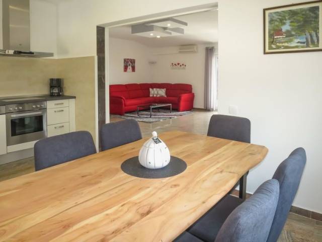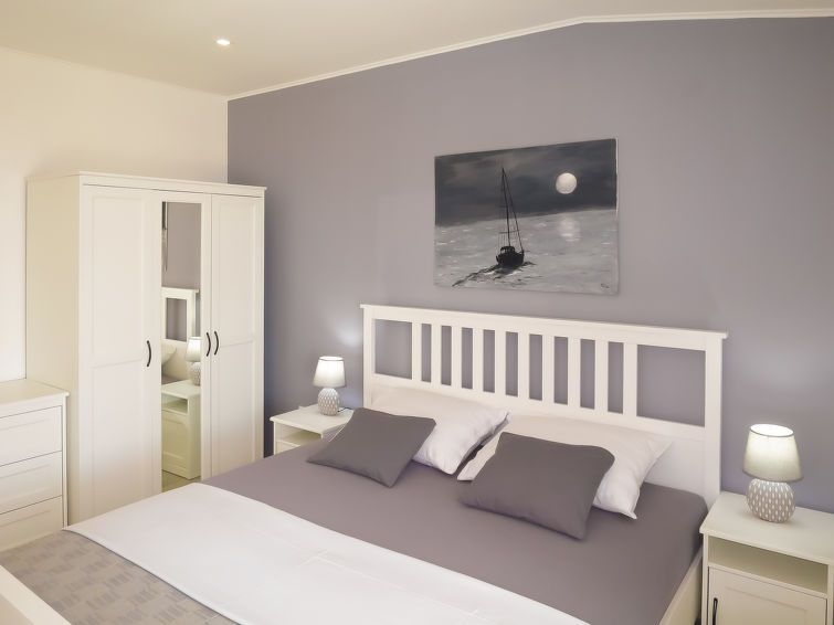 Casa de dos viviendas "Andrijana". A 17 km del centro de Starigrad, a 350 m del centro de Maslenica, a 6 km del centro de Posedarje, a 300 m del mar, a 300 m de la playa. Comunitario: terreno 600 m2 (vallado) con plantas y árboles. Terraza-jardín, barbacoa. En el inmueble: acceso a internet, lavadora (uso comunitario, extra). Aparcamiento en el mismo terreno. Tienda 100 m, playa rocosa 300 m. "Andrijana (SRD401)", apartamento de 3 estancias 80 m2 en el 1° piso. Salón-comedor con 1 sofá-cama doble (120 cm, 200 cm de longitud), TV satélite y aire acondicionado. Salida al balcón. 1 dorm. con 1 cama de matrimonio (180 cm, 200 cm de longitud). Salida al balcón. 1 dorm. con 1 cama doble (2 x 90 cm, 200 cm de longitud). Cocina abierta (4 fogones, horno, lavavajillas, tostadora, hervidor de agua eléctrico, congelador, cafetera eléctrica). Ducha/WC. Ningún tipo de calefacción. Balcón 30 m2. Muebles de balcón, tumbonas (2). Vista al mar. El alojamiento dispone de: Internet (Wifi, gratis). A tener en cuenta: casa para no fumadores.
