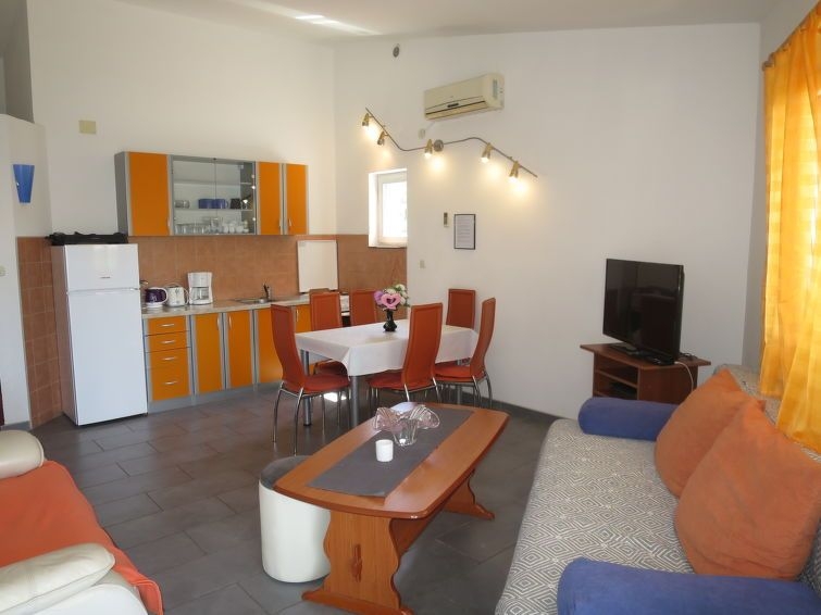"Ivanka (SRD320)", apartamento de 2 estancias 50 m2 en el 2° piso. Salón-comedor con 1 sofá-cama doble (150 cm, 190 cm de longitud), TV satélite y aire acondicionado. Salida al balcón. 1 dorm. con 1 cama (140 cm, 200 cm de longitud), 1 cama de matrimonio (150 cm, 190 cm de longitud). Cocina abierta (4 fogones, horno, tostadora, hervidor de agua eléctrico, congelador, cafetera eléctrica). Ducha/WC. Ningún tipo de calefacción. Balcón 20 m2. Muebles de balcón. Vista al mar. El alojamiento dispone de: Internet (Wifi, gratis). Plaza de aparcamiento (1 coche). A tener en cuenta: casa para no fumadores.
