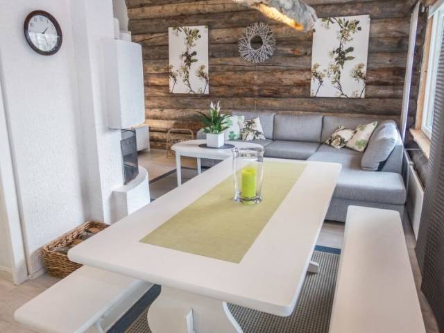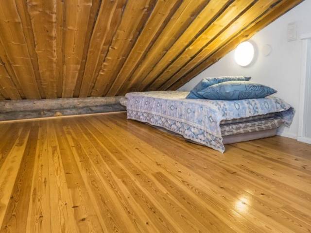 27 km al norte de Kuusamo, Ruka a 2,8 km, el lago Talvijärvi a 500 m. Bonita casa adosada de troncos en pendiente, construida en 1989. Combinada cocina-salón, con sofá para 1-2 personas, un dormitorio: cama doble, buhardilla (superficie 7 m², techos inclinados, techo bajo): 4 colchones, sauna eléctrica, baño/WC, ducha. Terraza. Apartamento situado en la zona de casas adosadas. El telesquí más cercano Talvijärvi (ruta de conexión). Otras distancias: Parque Nacional Oulanka / sendero Pieni Karhunkierros a 20 km, colina Riisitunturi a 26 km. Información adicional: parada de autobús par esquiadores a 200 m. Reservas empiezan a las 16.00 y terminan a las 12.00 (también las reservas de fines de semana).