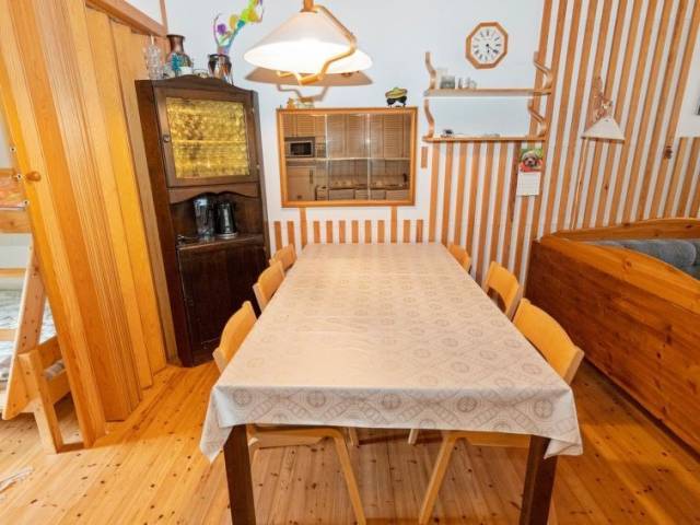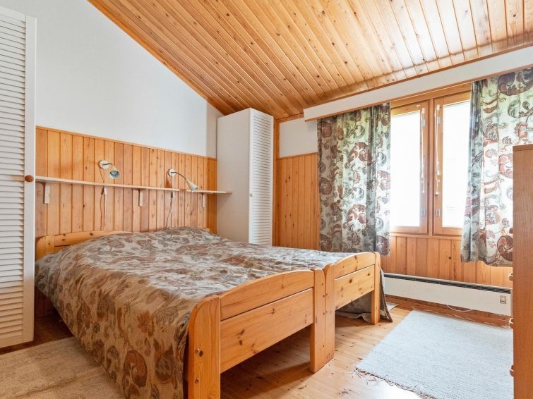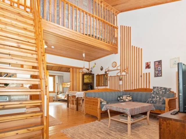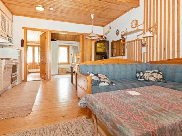 25 km al norte de Kuusamo, pueblo Ruka (Ruka oeste) a 2 km, el lago Talvijärvi a 30 m. Apartamento de tablones, construido en 1989, dormitorio 1: 2 camas, dormitorio 2 (puerta plegable): litera (cama inferior 120 cm, cama superior 80 cm ancha), buhardilla: 2 camas y litera baja, cocina-salón combinado, sauna eléctrica. Planta baja 50 m² + buhardilla 14 m². Apartamento se puede alquilar para un máximo de 6 personas. Apartamento en casa adosada situado en el lago Talvijärvi. Otras casas adosadas en la zona, pero la casa B está ubicada justo al lado del lago, tiene una vista bonita a la colina Rukatunturi. Depósito para esquís que se cierra con llave. Muelle (posibilidad de nadar) y lugar de hoguera de uso compartido. Otras distancias: Parque Nacional Oulanka / sendero Pieni Karhunkierros a 21 km, colina Riisitunturi a 27 km. Información adicional: solo para familias. Parada de autobús para esquiadores a 50 m. El restaurante más cercano Rukatonttu. Reservas empiezan a las 16.00 y terminan a las 12.00 (también las reservas de fines de semana).