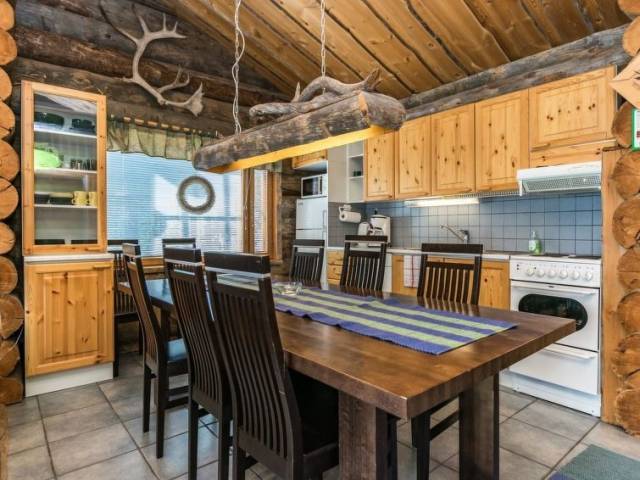 25 km al norte de Kuusamo, Vuosseli (Ruka este) a 800 m. Apartamento en casa adosada de troncos, construida en 1998, dormitorio: 2 camas, buhardilla baja (15 m²): 4 colchones, salón: sofá esquinero para dos personas, cocina, sauna eléctrica. Densamente construida zona de cabañas de troncos en Saarua-Aho, en la carretera Saarua-ahontie. El telesquí más cercano RukaExpress, el restaurante más cercano RoySki Pub. Equipo adicional: cuna de bebé bajo petición (gratis). Información adicional: barrera de seguridad infantil en la planta superior. Otras distancias: sendero de excursión de un día Valtavaara a 1 km, Parque Nacional Oulanka / sendero Pieni Karhunkierros a 29 km.