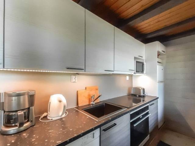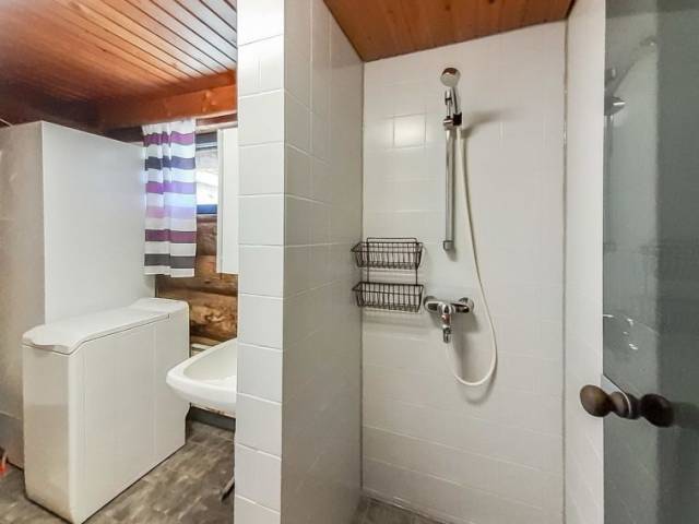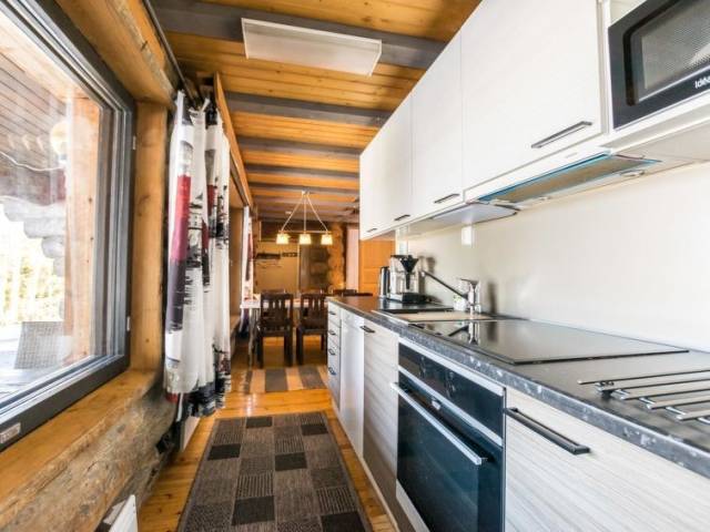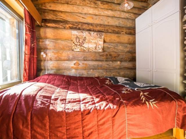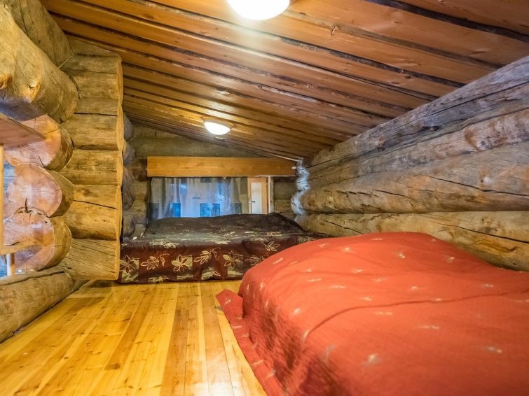 20 km al norte de Kuusamo, Ruka a 7 km, el estanque Mustalampi a 50 m, playa somera de fondo arenoso, muelle. La playa es aprox. 60 m larga y es de uso compartido con 3 cabañas más. Bote de remos, 2 piraguas y bote a pedal de uso compartido. Cabaña de troncos, construida en 1988, dormitorios 1-2: cama doble, salón: cama convertible, buhardilla: 1 cama + 6 colchones, combinada cocina-salón, sauna eléctrica. Planta baja 96 m², buhardilla 35 m². Otras cabañas de Mustalampi en el área. La cabaña se encuentra en pendiente y las escaleras llevan a la playa. Equipo adicional: Baño renovado en 2014. Secador de ropa eléctrico. Otras distancias: Parque Nacional Oulanka / sendero Pieni Karhunkierros a 28 km, colina Riisitunturi a 34 km. Información adicional: a 2.5 km del sendero de esquí oficial (hay un sendero de conexión desde la cabaña al sendero de esquí oficial). Mascotas están permitidas a precio adicional (10 e/reserva). Reservas empiezan a las 16.00 y terminan a las 12.00 (también en las reservas de fines de semana).