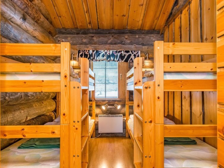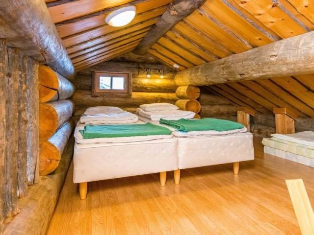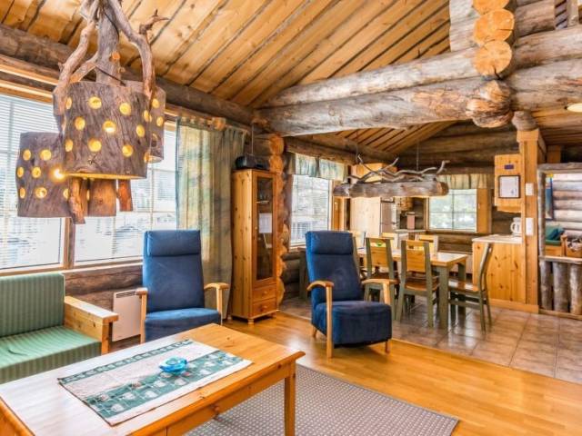 25 km al norte de Kuusamo, Vuosseli (Ruka este) a 700 m. Cabaña de troncos "kelo", construida en 2002, dormitorio 1: 2 camas, dormitorio 2: 2 literas, en la buhardilla (10 m²) 2 camas, salón: sofá convertible, salón, cocina, sauna eléctrica. Zona de cabañas de troncos densamente construida en Saarua-Aho, en la carretera Saaruantie. El telesquí más cercano RukaExpress, el restaurante más cercano RoySki Pub. Equipo adicional: Tostadora, hervidor de agua, batidora, plancha y tabla de planchar. Información adicional: barrera de seguridad infantil en la buhardilla. Aparcamiento para 2 coches. Depósito que se Cierra con llave para la leña y esquís. Otras distancias: sendero de excursión de un día Valtavaara a 1 km, Parque Nacional Oulanka / sendero Pieni Karhunkierros a 29 km. Reservas empiezan a las 16.00 y terminan a las 12.00 (las reservas de fines de semana también).