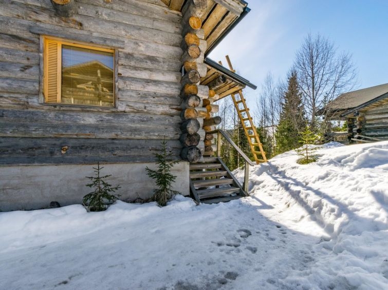 25 km al norte de Kuusamo, Vuosseli (Ruka este) a 800 m. Apartamento en casa de troncos en pendiente, construida en 2004, dormitorio: 2 camas, buhardilla (10 m²): 2 camas, salón: sofá convertible para dos personas, cocina, sauna eléctrica. Planta baja 50 m² + buhardilla 10 m². Densamente construida zona de cabañas de troncos en Saarua-Aho, en la carretera Ylätie. El telesquí más cercano RukaExpress, el restaurant más cercano RoySki Pub. Equipo adicional: barrera de seguridad infantil en la buhardilla. Otras distancias: sendero de excursión de un día Valtavaara a 1 km, Parque Nacional Oulanka / sendero Pieni Karhunkierros a 29 km.