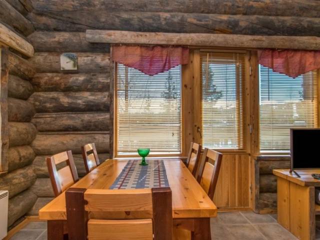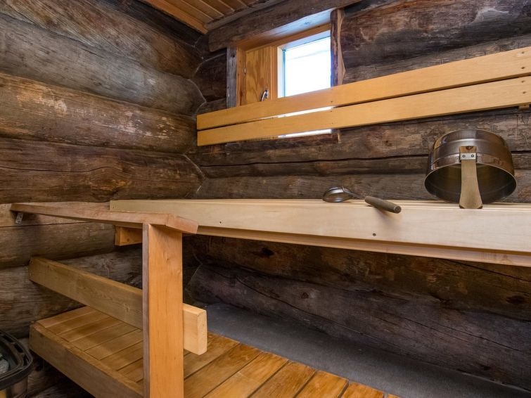 25 km al norte de Kuusamo, Vuosseli (Ruka este) a 800 m. Apartamento en casa de troncos en pendiente, construida en 2004, dormitorio: 2 camas, buhardilla: 2 camas, salón: sofá convertible para dos personas, cocina, sauna eléctrica. Planta baja 50 m² + buhardilla 10 m². Densamente construida zona de cabañas de troncos en Saarua-Aho, en la carretera Ylätie. El telesquí más cercano RukaExpress, el restaurante más cercano RoySki Pub. Equipo adicional: Tostadora, hervidor de agua. Barrera de seguridad infantil en la buhardilla. Otras distancias: sendero de excursión de un día Valtavaara a 1 km, Parque Nacional Oulanka / sendero Pieni Karhunkierros a 29 km. Reservas empiezan a las 16.00 y terminan a las 12.00 (también en las reservas de fines de semana.