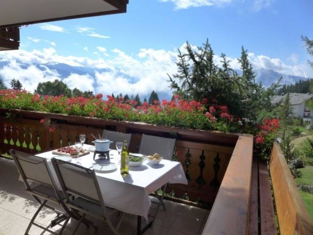 Residencia "Orana", muy bonita, agradable, confortable, rodeada de árboles. Por encima Montana, en el barrio de Barzettes, a 2.2 km del centro de Montana, lugar tranquilo, elevado, a 500 m de las pistas de esquì. Orientación sur. En el complejo: sauna, ascensor, sala guardaesquís, calefacción central, lavadora, secadora (uso comunitario, extra). Garaje comunitario. Tienda 2.1 km, supermercado 2.2 km, restaurante 2.1 km, panadería 800 m, parada de autobús "Barzettes" 50 m. Campo de golf (18 hoyos) 4.2 km, remontes, pistas de esquí 500 m, parada de ski-bus 50 m, pista de hielo 2.5 km. Lagos conocidos fácilmente accesibles: Lac Grenon 2.9 km, Lac de la Moubra 3.1 km, Etang Long 4 km. A tener en cuenta: skibus gratuito.