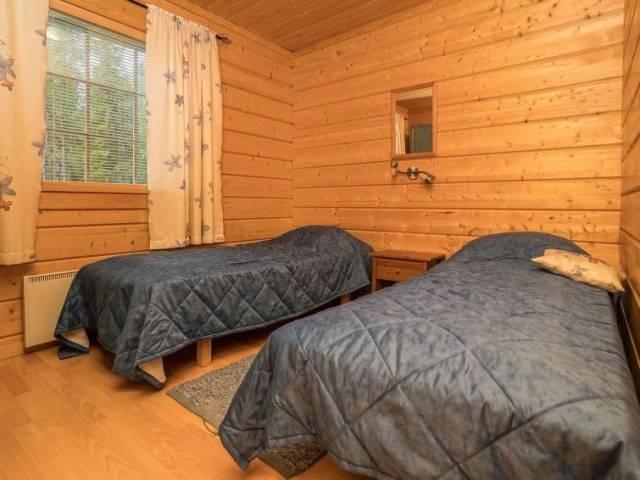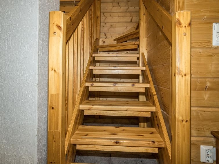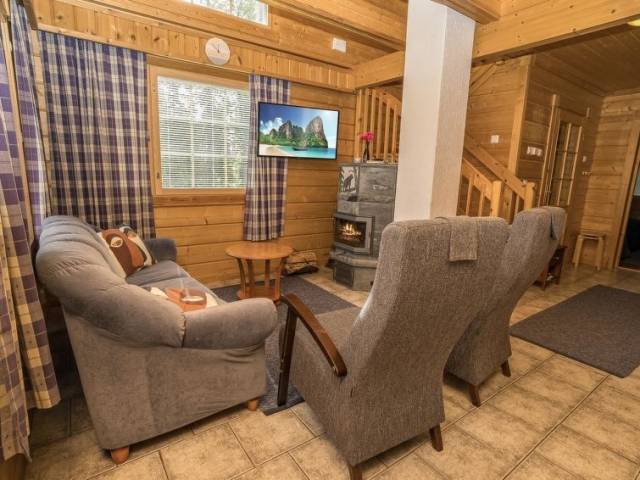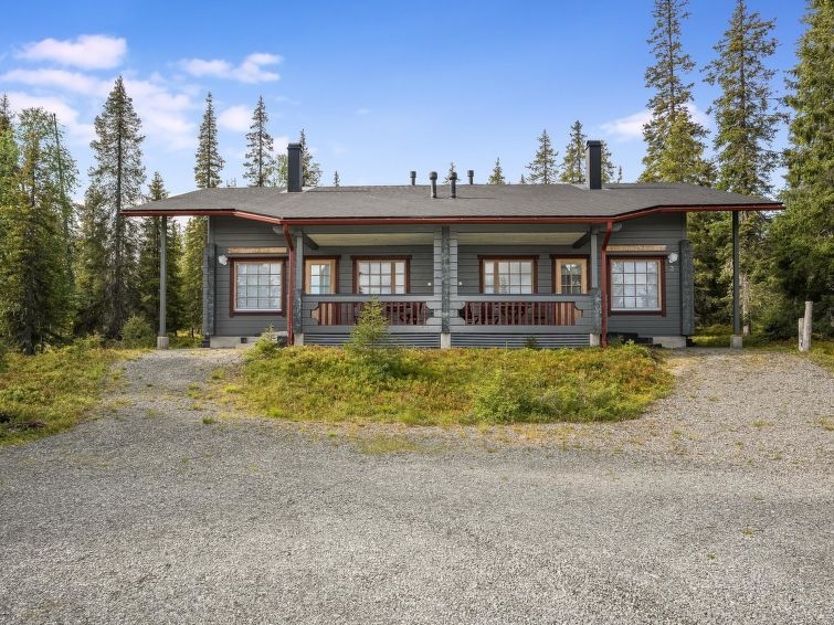 25 km al norte de Kuusamo, Vuosseli (Ruka este) a 1.1 km. Apartamento de alto nivel en casa adosada de troncos, construida en 2004, en la planta baja el dormitorio 1: cama doble, dormitorio 2: 2 camas, en la planta superior los dormitorios 3-4: 2 camas, pasillo: sofá convertible para dos personas, escaleras a la planta superior no son empinadas, salón-cocina combinada, sauna eléctrica. Zona de cabañas y apartamentos vacacionales en la carretera Kinoskuja. El telesquí más cercano Masto, el restaurante más cercano RoySki Pub. Equipo adicional: secador de pelo, batidora. Otras distancias: Parque Nacional Oulanka / sendero Pieni Karhunkierros a 28 km.