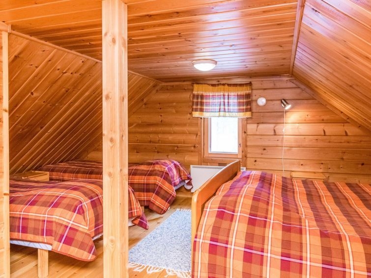 38 km al norte de Kuusamo, Ruka a 8 km, lago Pikku-Porontima a 30 m, el fondo de barro parcialmente lijado y gradualmente inclinado, un muelle. Cabaña de troncos, construida en 1998, dormitorio 1: cama doble, buhardilla (30 m², techos inclinados, el punto más alto mide más de 170 cm): cama doble, 3 camas. Combinada cocina y salón, sauna eléctrica. Cabaña de troncos situada a orillas del lago Porontima de agua clara. Equipo adicional: bote de remos y chalecos salvavidas, dos muelles: uno en la playa para nadar y otro para el bote. Redes de pesca y licencias para las redes de pesca disponibles del propietario (sin cargo extra). Lugar de hoguera y cobijo exterior en el patio. La cabaña tiene una bomba térmica con alimentación de aire. Información adicional: el propietario hace un sendero de esquí de fondo que lleva al sendero de esquí oficial (a unos 5 km de distancia de la cabaña). Centro de esquí de Ruka (Ruka este) a 8 km de distancia vía la carretera Vuosselintie, por carretera principal el pueblo Ruka está aprox. a 14 km. Reservas empiezan a las 16.00 y terminan a las 12.00 (también las reservas de fines de semana).