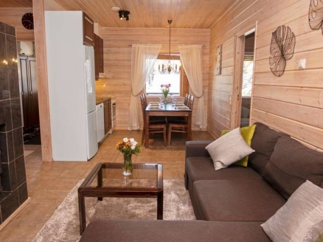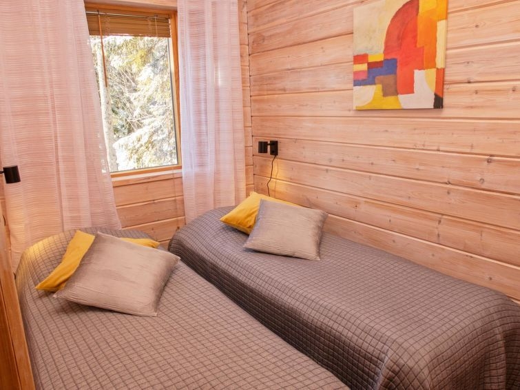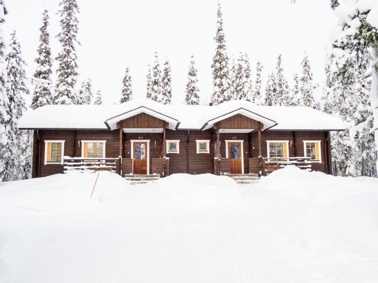 Permitido máximo 1 mascota / perro. 30 km al norte de Kuusamo, Vuosseli (Ruka este) a 4 km, pueblo Ruka (Ruka oeste, plaza Ruka) a 8 km, el lago Vuosselijärvi a 40 m. Cabaña adosada de troncos construida en 2007, dormitorios 1-3: 2 camas en cada uno, combinada cocina-salón, sauna eléctrica. Cabaña adosada de troncos en la Ruka este, a 4 km de las pistas. Sendero de motonieves a 1 km. Kuusamo Golf a 26 km (a unos 30 min. en coche). Información adicional: bote de remos y lugar de hoguera (uso compartido con el vecino). Reservas empiezan a las 16.00 y terminan a las 12.00 (también en las reservas de fines de semana).