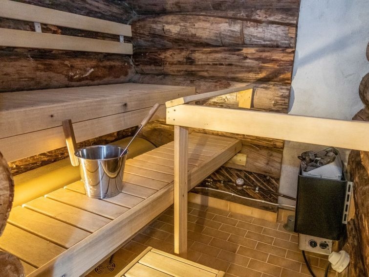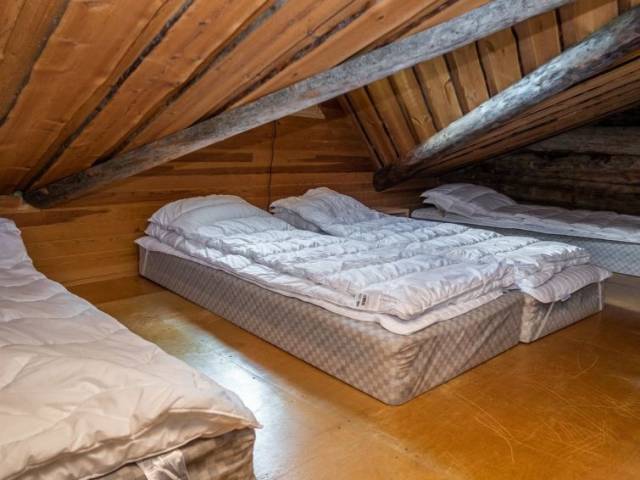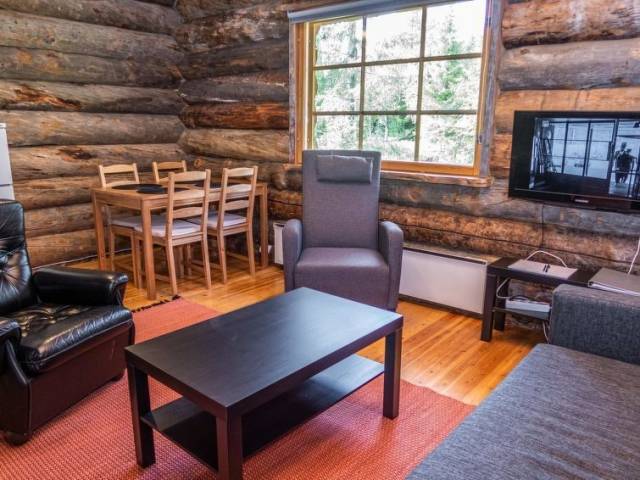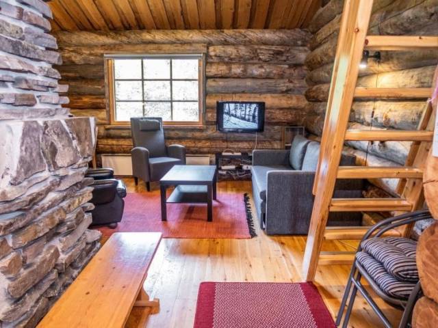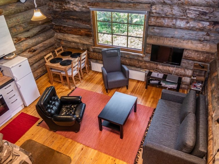 23 km al norte de Kuusamo, pueblo Ruka (Ruka oeste) a 3,7 km, el lago Rukajärvi a 60 m (4 km largo, 1.5 km ancho), orilla somera, duro fondo de arena, bote propio, orilla compartida. Apartamento final en una casa adosada de troncos plateados (casa pareada), salón-cocina, buhardilla para dormir (13 m², techos inclinados, altura baja del techo, escalera empinada) 4 colchones, sauna, baño (cabina de ducha). Ordenado apartamento de troncos plateados a orillas del lago cerca de los servicios del centro de esquí Ruka. Centro de Ruka a 3.7 km, Kuusamon Tropiikki spa a 19 km. Lugar para hoguera de uso compartido. Ruta de autobús para esquiadores a 150 m de distancia.