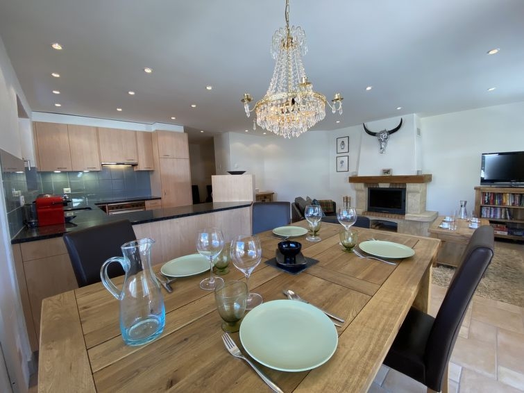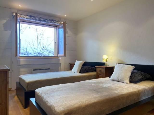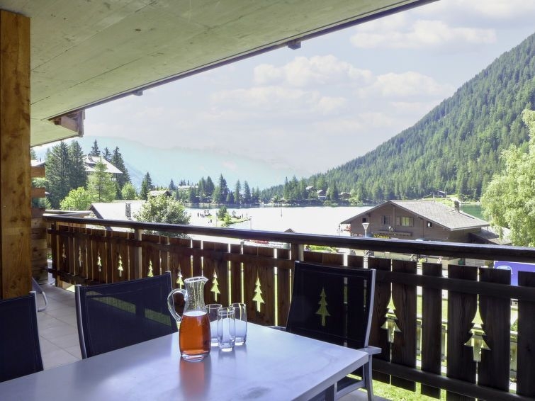 "Les Mayens 1.1", apartamento de 3 estancias en el 1° piso. Espacioso y luminoso, con mobiliario confortable y moderno: salón-comedor grande con chimenea, TV cable y calefacción eléctrica. Salida al balcón, orientación sur. 1 dorm., grande con 1 cama de matrimonio (1 x 160 cm, 200 cm de longitud), baño. 1 dorm. con 2 camas (90 cm, 200 cm de longitud). Rincón-cocina (lavavajillas, 4 placas de vitrocerámica, tostadora, hervidor de agua eléctrico, cafetera eléctrica, Cápsulas de café (Nespresso) extra, horno Raclette, set de Fondue (chinoise, queso)). Ducha/WC. Balcón 12 m2, orientación sur. Muebles de balcón. Vista panorámica al lago y a las montañas. El alojamiento dispone de: lavadora, plancha, secador de pelo. Internet (Wifi, gratis). Garaje n. 1er place à gauche.