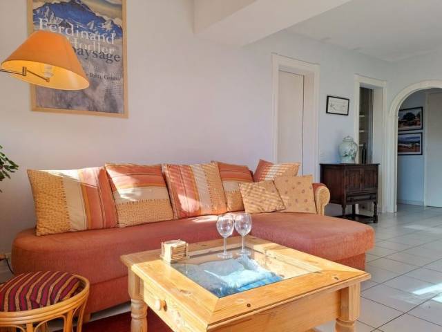"Alpes et Lac 2", apartamento de 2 estancias 50 m2, en la planta baja, orientación suroeste. Luminoso, con mobiliario confortable y bonito: salón-comedor grande con 2 posibilidades para dormir (1 x 140 cm, 180 cm de longitud), chimenea y TV cable. Salida al jardín. 1 dorm. con 1 cama doble (2 x 90 cm, 200 cm de longitud). Rincón-cocina (horno, lavavajillas, microondas, cafetera eléctrica, Cápsulas de café (Nespresso) extra, horno Raclette, set de Fondue (queso)). Ducha, WC separado. Jardín grande 40 m2. Muebles de terraza. Vista panorámica espléndida al lago y a las montañas. El alojamiento dispone de: secador de pelo. Internet (Wifi, gratis). Garaje n. 25. A tener en cuenta: adecuado para familias. Apartamento para no fumadores.