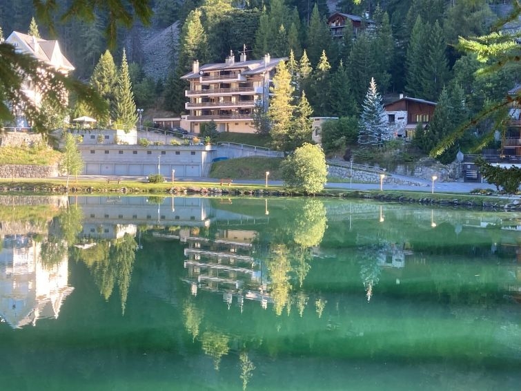 Casa de apartamentos "Beau Rivage", de 3 plantas. En la localidad, a 400 m del centro, lugar soleado, a 30 m de un lago. En el inmueble: ascensor, sala guardaesquís, lavadora, secadora. Acceso hasta el terreno. Garaje individual, posibilidad de aparcamiento 900 m. Tienda 400 m, restaurante 30 m, panadería 500 m, café 30 m. Telesquí 700 m, remontes 1.3 km, pista de hielo 250 m, parque infantil 500 m, Posibilidades de pesca 30 m.