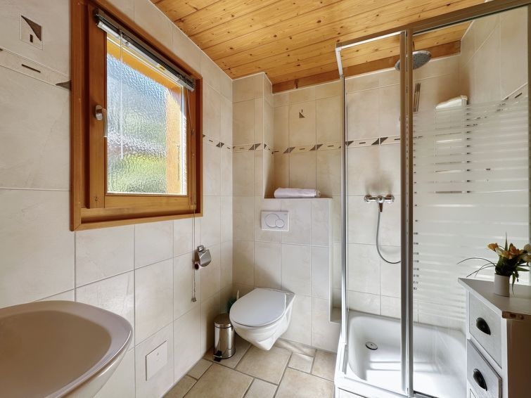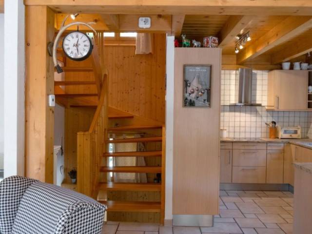 "Miranda", chalet de madera 4 estancias 140 m2 en 3 plantas. Espacioso, con mobiliario moderno y agradable: salón-comedor grande con chimenea y TV cable. Salida al jardín, a la terraza, orientación sur y orientación este. Cocina abierta (lavavajillas, 4 placas de vitrocerámica, microondas, congelador, cafetera eléctrica, Cápsulas de café (Nespresso) extra, horno Raclette, set de Fondue (queso)). Ducha/WC. En planta inferior: sala de juegos con TV (pantalla plana), vídeo. Planta superior: 1 dorm. con 1 cama de matrimonio. 1 dorm. para niños con 2 camas y 1 x 2 literas. 1 dorm. con 2 camas. Baño/WC. Terraza grande, césped. Muebles de terraza, barbacoa, tumbonas (2). Vista bonita a la piscina, al paisaje y al bosque. El alojamiento dispone de: lavadora, secadora, trona, cuna, cómoda con cambiador para bebés. Internet (Wifi, gratis). Plaza de aparcamiento (2 Coches), garaje (2 Coches). A tener en cuenta: adecuado para familias. Casa para no fumadores. 2 mochilas portabebés también están disponibles. Hay una PS3 en el cuarto de juegos (sin juegos).
