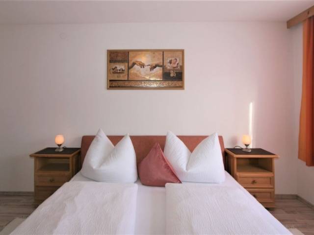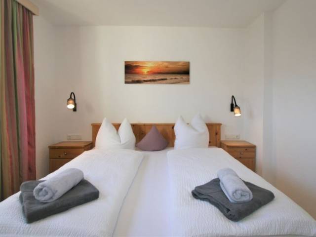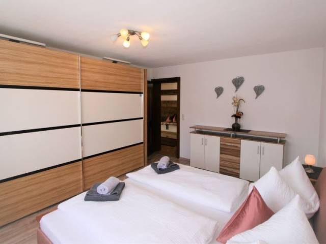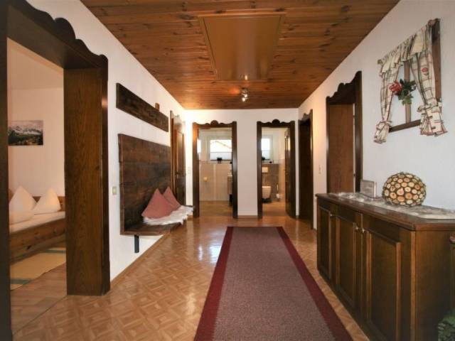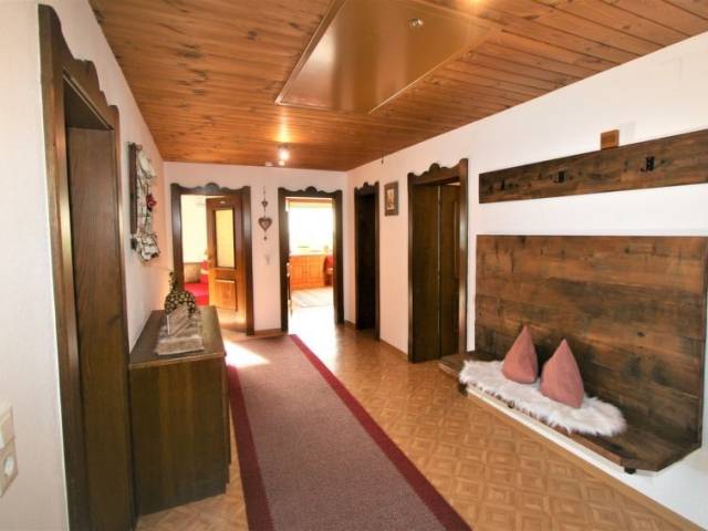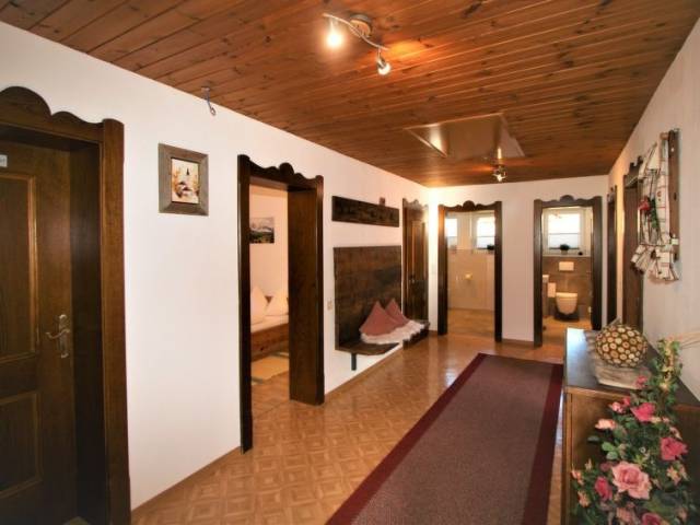 "Märzenblick", apartamento de 4 estancias 110 m2. Planta superior: 2 dorm. dobles. 1 dorm. doble con TV satélite. Salón con rincón-comedor y TV satélite. Cocina (4 placas de vitrocerámica, tostadora, hervidor de agua eléctrico, microondas, cafetera eléctrica) con mesa de comedor. Ducha/WC, WC separado. Calefacción por suelo. 2 balcones. Muebles de balcón. Vista panorámica espléndida a las montañas.
