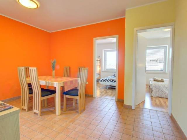 Casa adosada bonita, sencilla, individual, reformada en 2010. En la periferia, lugar tranquilo, soleado, elevado en una pendiente, a 15 km del mar, a 150 km de un lago, a 15 m de la playa, a 180 km de las pistas de esquì. A 90 km del río, en una calle, en el campo. Comunitario: terreno 1'000 m2. Piscina para niños, barbacoa. En el inmueble: aire acondicionado. Aparcamiento junto a la casa. Tienda de comestibles 3.5 km, supermercado 15 km, restaurante 3.5 km, cala para bañarse 15 km. Tenis 15 km. "Apartment Andi", apartamento de 3 estancias 45 m2 en el 1° piso. Con mobiliario sencillo y agradable: salón-comedor. Salida al balcón. 1 dorm. con 1 cama doble (1 x 180 cm, 200 cm de longitud) con 1 x 2 literas, 1 cama doble (1 x 160 cm, 200 cm de longitud). Cocina abierta (4 fogones) con mesa de comedor. Ducha/WC. Calefacción por el suelo. Balcón 6 m2. Muebles de terraza. Vista al valle y al paisaje. El alojamiento dispone de: Internet (Wifi). 1 mascota / perro.