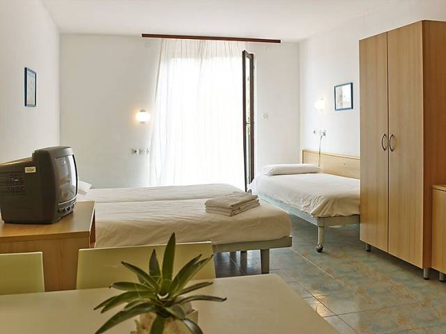 Apartamento de 2 estancias 42 m2, en planta superior. Reformado, con mobiliario bonito y moderno: salón-dormitorio, abierto con 3 camas, TV satélite y aire acondicionado. 1 dorm. con 2 camas. Rincón-cocina (2 fogones). Ducha/WC. Calefacción eléctrica. Balcón pequeño 5 m2. Muebles de terraza. Adecuado para familias. 1 mascota / perro.