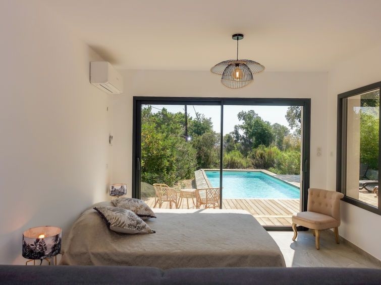 Casa adosada "Les Jardins d'Ève" del año 2019, rodeada de árboles. A 8 km del centro de Solenzara, a 33 km del centro de Porto Vecchio, a 105 km del centro de Bastia, lugar soleado, a 150 m del mar. Privado: piscina climatizada (7 x 3 m, 150 cm de profundidad, Disponible por temporada: 02.Abr. - 01.Oct.) con alarma. Aparcamiento en el mismo terreno. Tienda 1.5 km, supermercado 8 km, playa de arena "Baie de Canella" 900 m, playa rocosa 300 m. Zona de senderismo Aiguilles de Bavella 39 km. A tener en cuenta: coche recomendable.