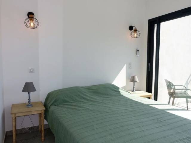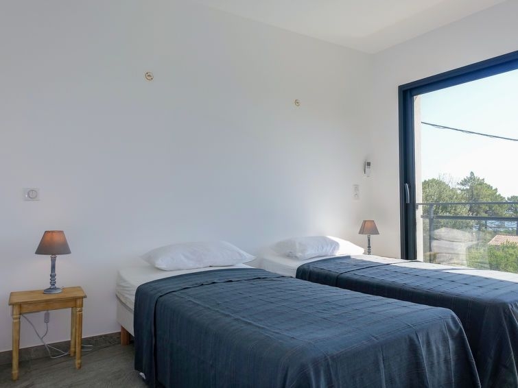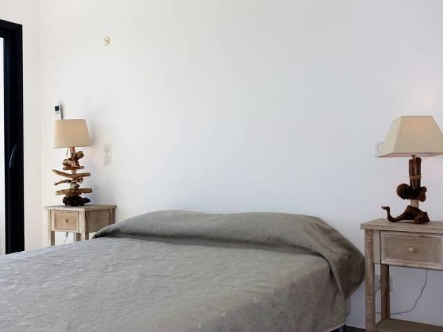 "Villa Kalliste", casa adosada 5 estancias 130 m2 en 2 plantas. Espacioso y luminoso, con mobiliario confortable: salón-comedor con mesa de comedor. Salida al jardín, a la terraza. 1 dorm. con 1 cama de matrimonio (160 cm, 200 cm de longitud), ducha/WC. Salida a la terraza, a la piscina. Cocina abierta (horno, lavavajillas, 4 placas de vitrocerámica, hervidor de agua eléctrico, microondas, cafetera eléctrica). WC separado. Calefacción eléctrica, aire acondicionado. Planta superior: 2 dorm., cada habitación con 1 cama de matrimonio (160 cm, 200 cm de longitud), ducha/WC. 1 dorm. con 2 camas (90 cm, 200 cm de longitud), baño/WC. Terraza grande 90 m2 parcialmente cubierta. Muebles de terraza, tumbonas (6), rincón para sentarse. Vista al mar y al paisaje. El alojamiento dispone de: lavadora, caja fuerte, secador de pelo. Internet (Wifi). Plaza de aparcamiento junto a la casa. A tener en cuenta: adecuado para familias. 1 mascota / perro. Detector de humo. Oferta de un propietario comercial según el art. 155, IV, CGI