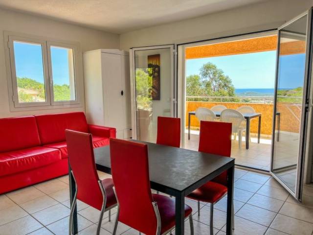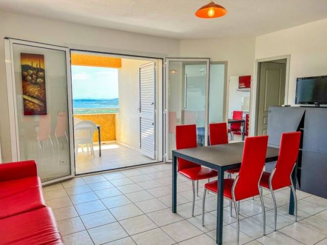 " T2 vue mer (PVC513)", apartamento de 2 estancias 42 m2. Con mobiliario bonito y moderno: salón con 1 sofá-cama doble (160 cm), mesa de comedor y TV satélite. 1 dorm. con 1 cama de matrimonio (160 cm). Cocina abierta (horno, lavavajillas, 2 placas de vitrocerámica, tostadora, microondas, cafetera eléctrica). Ducha/WC. Calefacción, aire acondicionado. Terraza. Muebles de terraza, barbacoa. Vista panorámica bonita al mar. El alojamiento dispone de: caja fuerte. A tener en cuenta: adecuado para familias. Apartamento para no fumadores. Detector de humo. Oferta de un propietario comercial según el art. 155, IV, CGI