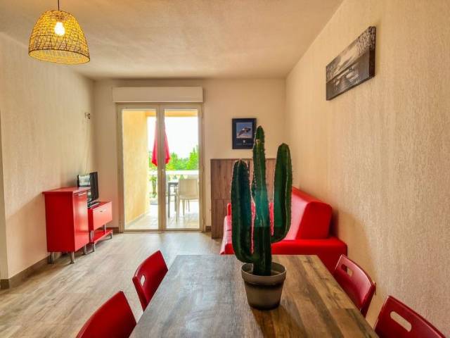 Residencia "Via Mare", bonita, confortable. 40 apartamentos en la residencia. A 8 km del centro de Porto Vecchio, a 34 km del centro de Bonifacio, a 143 km del centro de Bastia, lugar soleado, elevado en una pendiente, a 3 km del mar, en el campo. Comunitario: terreno en estado natural 5 ha (vallado) con plantas y árboles, jardín natural, piscina vallada (15 x 8 m, Disponible por temporada: 16.Abr. - 15.Oct.). Ducha exterior, petanca, terraza. En el complejo: recepción, bar, Wifi, gimnasio, hammam, lavadora, secadora (uso comunitario, extra). Cambio de sábanas (suplemento extra). Cambio de toallas (suplemento extra). Posibilidad de limpieza 1 vez por semana (extra). Servicio a domicilio de panecillos posibilidad: bajo petición. Aparcamiento en el mismo terreno. Tienda 2.5 km, supermercado 8 km, bar 3 km, playa de arena "St. Cyprien & Pinarellu" 3 km. A tener en cuenta: coche recomendable. Residencia con puertas de cierre eléctrico. La foto corresponde a una de las viviendas. Los alojamientos pueden diferir en la superficie habitable, la distribución de las estancias, el equipamiento y el mobiliario.