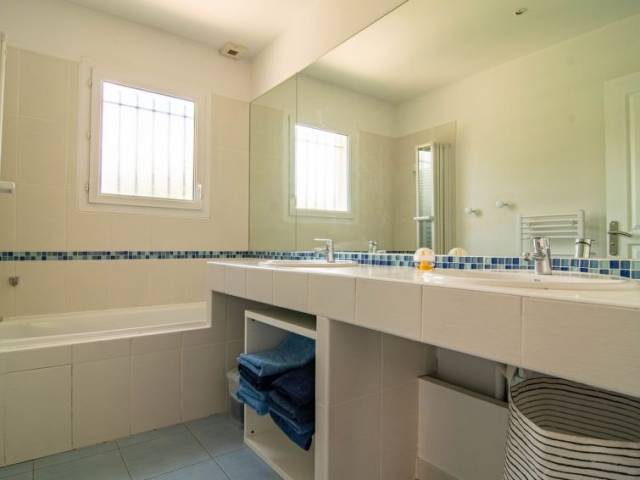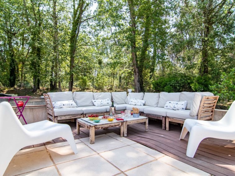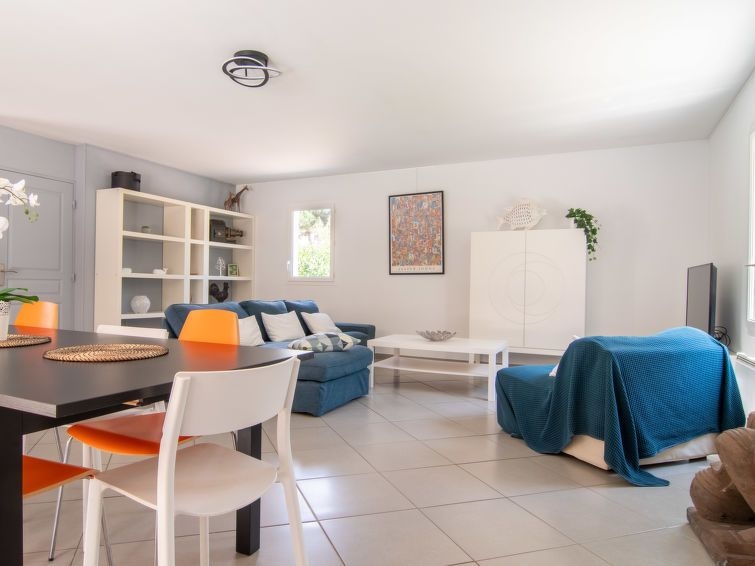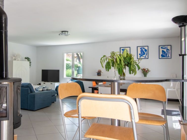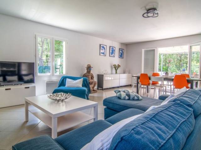 "Villa Matisse", villa 5 estancias 150 m2 en 2 plantas. Con mobiliario confortable: salón-comedor con chiminea nórdica (sólo con función decorativa), mesa de comedor y TV. Salida a la terraza. 1 dorm. con 1 cama de matrimonio (160 cm, 200 cm de longitud), ducha. Salida a la terraza. Cocina abierta (horno, lavavajillas, 3 placas de vitrocerámica, tostadora, hervidor de agua eléctrico, cafetera eléctrica). Salida a la terraza. WC separado. Planta superior: 2 dorm., cada habitación con 2 camas de matrimonio (140 cm, 200 cm de longitud). 1 dorm. con 2 camas (90 cm, 200 cm de longitud). Baño, WC separado. Calefacción eléctrica. Terraza grande. Muebles de terraza, barbacoa, tumbonas (6). El alojamiento dispone de: lavadora, plancha, trona, cuna, secador de pelo. Internet (Wifi, gratis). A tener en cuenta: casa para no fumadores. Detector de humo. Oferta de un particular según el art. 155, IV del CGI.