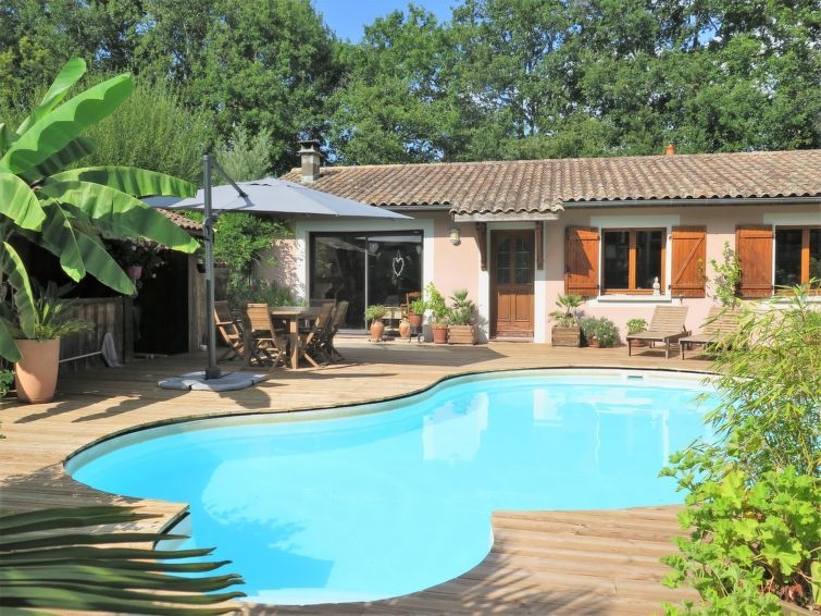 Casa unifamiliar "Taste Rebire", agradable. En un aldea, a 4 km del centro de Vendays, a 11 km del centro de Montalivet, a 11 km del centro de Lesparre, lugar aislado, tranquilo, a 12 km del mar. Privado: terreno 2'000 m2 (vallada) con plantas y árboles, piscina en forma de riñon (150 cm de profundidad, Disponible por temporada: 01.May. - 30.Sep.) con alarma. Terraza, aparcamiento junto a la casa en el mismo terreno. Tienda 4 km, supermercado 4 km, playa de arena "Montalivet" 12 km, lago "Hourtin-Port" 20 km. Atracciones en los alrededores: Hourtin 12 km, Soulac 25 km. Una parte de la casa está cerrada e inocupada.