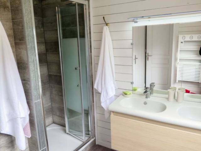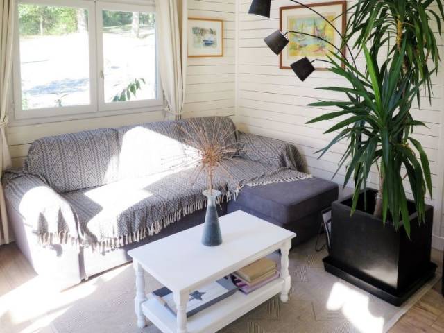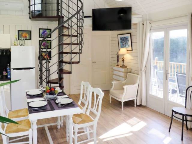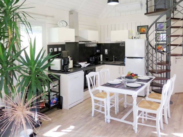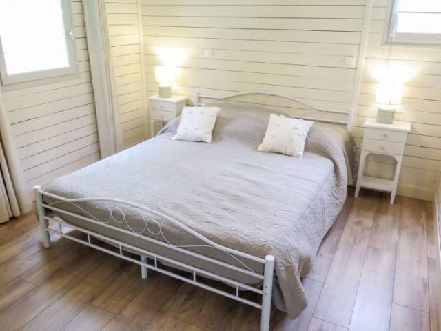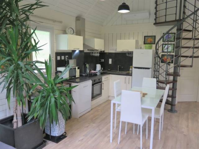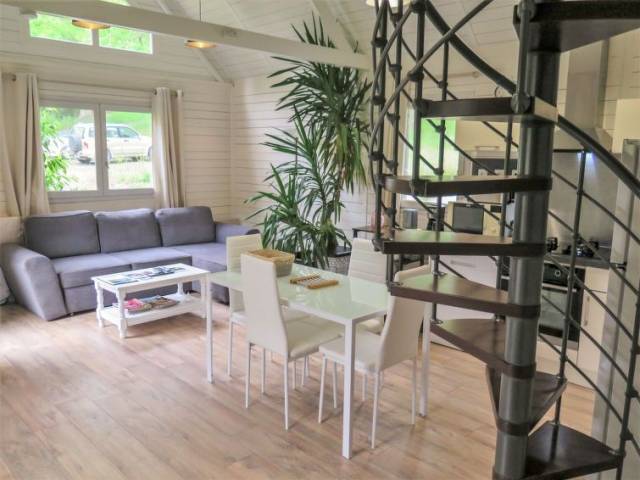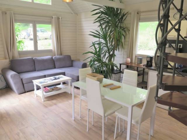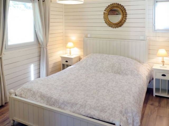 "Le Mazeré", chalet de madera 3 estancias 50 m2 en 2 plantas. Luminoso, con mobiliario confortable y bonito: salón-comedor con mesa de comedor, TV y canales internacionales (pantalla plana), equipo de música y DVD. Salida a la terraza. 1 dorm. con 1 cama de matrimonio (160 cm, 200 cm de longitud). Cocina abierta (horno, lavavajillas, 3 fuegos, tostadora, hervidor de agua eléctrico, microondas, congelador, cafetera eléctrica). Ducha, WC separado, doble lavabo. Planta superior: 1 dorm., abuhardillado con 2 camas (90 cm, 190 cm de longitud), WC separado. Aire acondicionado, aire caliente. Terraza. Muebles de terraza, tumbonas (4). Vista al lago. El alojamiento dispone de: lavadora, plancha, trona, cuna. Internet (Wifi, gratis). A tener en cuenta: casa para no fumadores. Detector de humo.