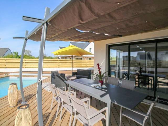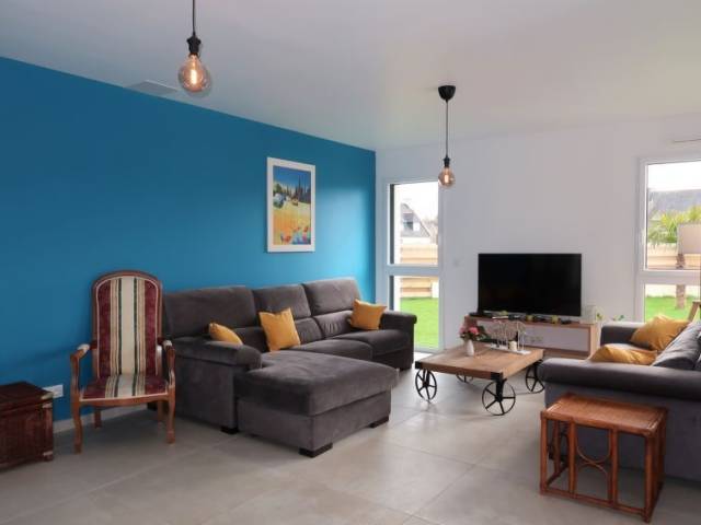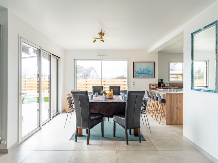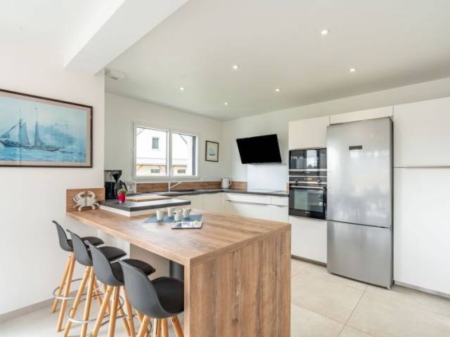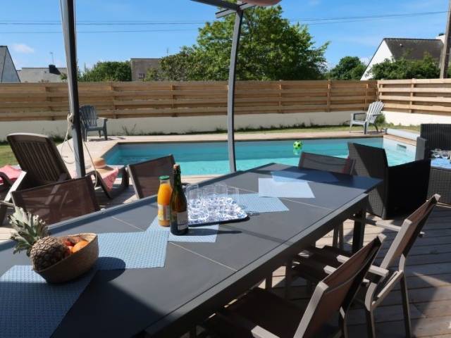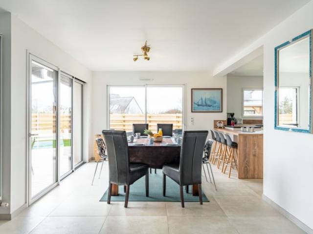 Casa unifamiliar "Lagon bleu", bonita de 2 plantas del año 2020. En el barrio de Skividan, a 3 km del centro de Guilvinec, a 9 km del centro de Pont l'Abbé. Privado: terreno 1'120 m2, jardín, cuidado (vallado) con césped, piscina rectangular, climatizada (7 x 3 m, 150 cm de profundidad, Disponible por temporada: 02.Abr. - 01.Oct.) con sistema de cobertura. Trastero a disposición. Aparcamiento (para 3 coches) en el mismo terreno. Supermercado 3 km, panadería 2.3 km, playa de arena "plage de Skividan" 750 m. Puerto deportivo 2.5 km, escuela de vela 3 km. Atracciones en los alrededores: Pointe de la Torche 12 km, Phare d'Eckmühl 12 km, Haliotika, Le Guilvinec 3.5 km, Baie d'Audierne 12 km, Quimper 31 km.