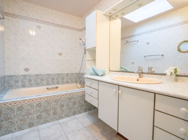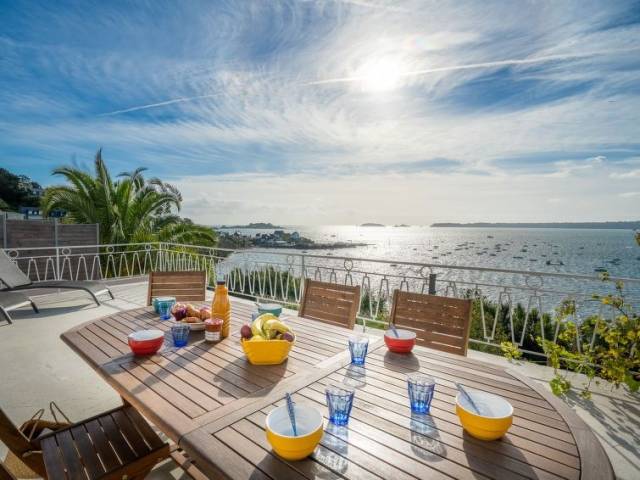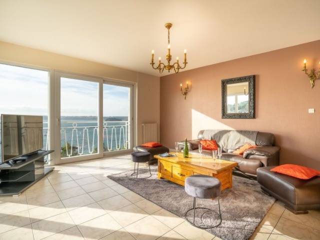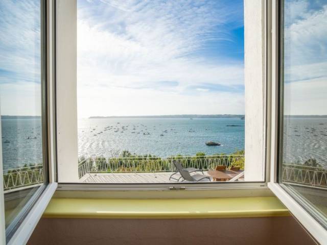 "Le Littoral", casa 4 estancias 120 m2 en 2 plantas. Con mobiliario funcional y con mucha madera: salón con ventanal con TV y pantalla plana. Salida al balcón. 1 dorm. con 1 cama de matrimonio (140 cm, 190 cm de longitud). Cocina (horno, lavavajillas, 4 fuegos, tostadora, hervidor de agua eléctrico, microondas, cafetera eléctrica) con mesa de comedor. Baño/ducha, WC separado. Planta superior: 1 dorm., abuhardillado con 1 cama doble (140 cm, 190 cm de longitud). 1 dorm., abuhardillado con 1 cama doble (160 cm, 190 cm de longitud). Calefacción gasóleo. Suelo de parquet. Balcón 10 m2, terraza grande 150 m2, orientación sur. Muebles de terraza, barbacoa (portátil), tumbonas (3), trastero. Vista espléndida al mar y a la bahía. El alojamiento dispone de: lavadora, plancha, secador de pelo. Internet (Wifi, gratis). A tener en cuenta: casa para no fumadores. Entrada privada, detector de humo.